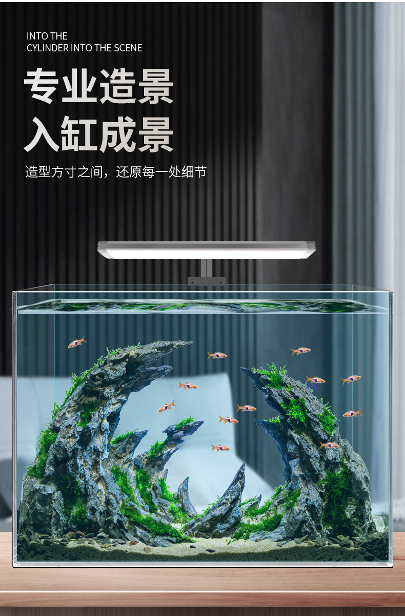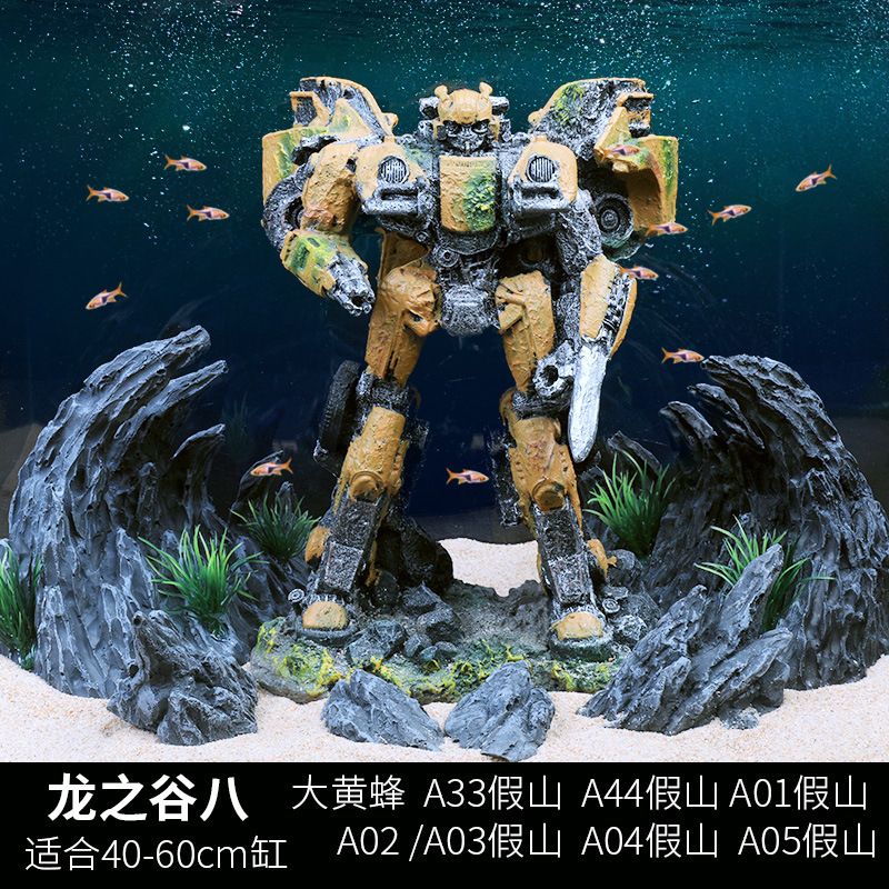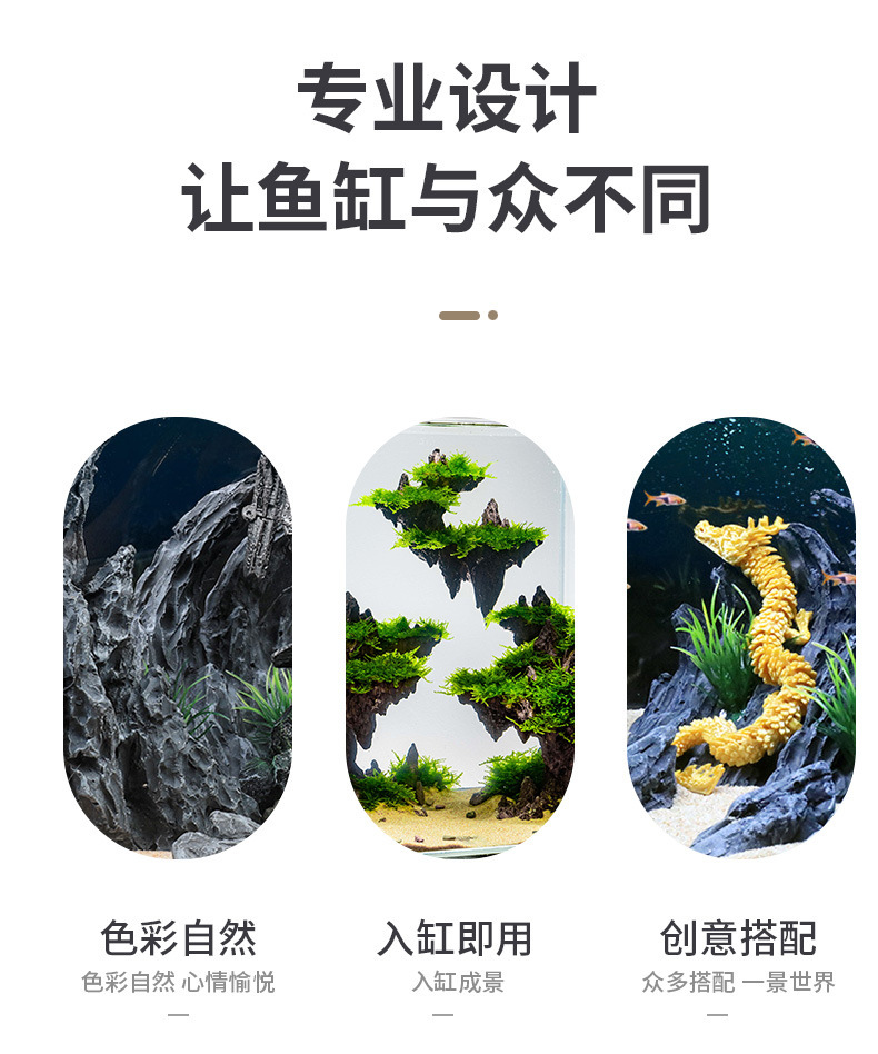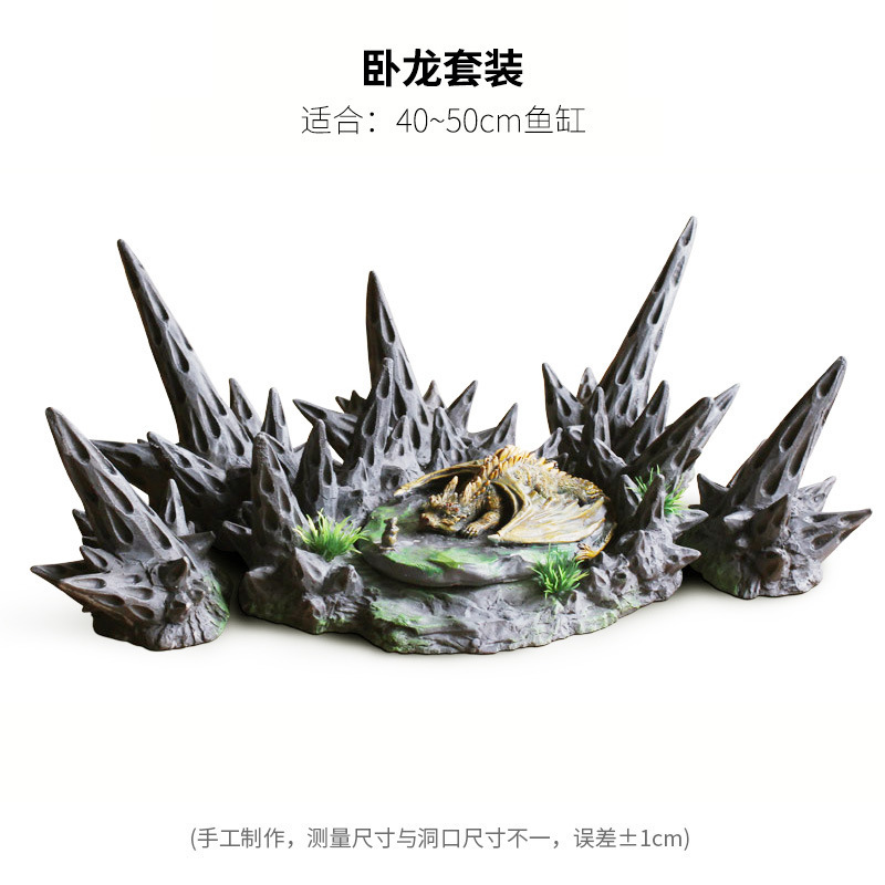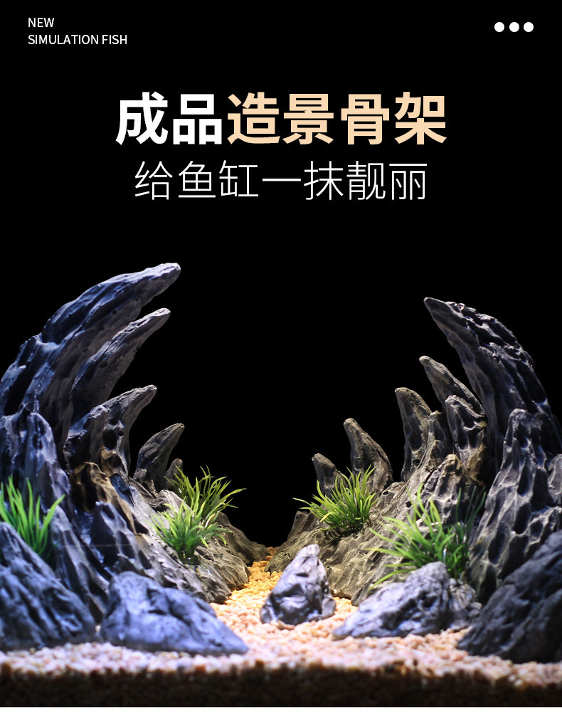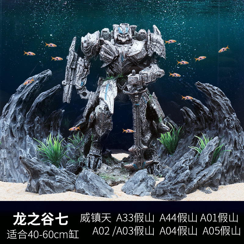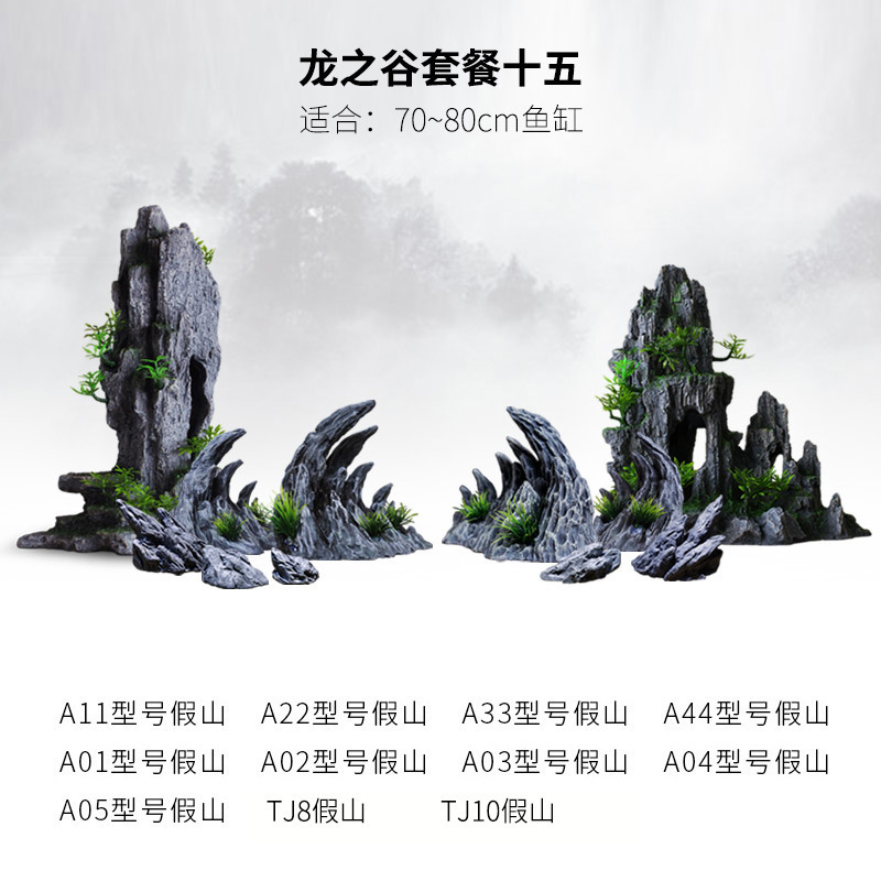 수조 조경 장식품, 시뮬레이션된 녹색 용암 계곡, 가짜 바위 장식, 수생 식물, 작은 수족관, 계곡 패키지, Douyin