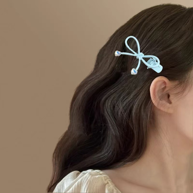 한국 스타일 다채로운 헤어핀 여성용 라이트 럭셔리 라인석 러브 보우 헤어핀 Ins 달콤한 스타일 독특한 헤어 액세서리 트렌디스토어 가기