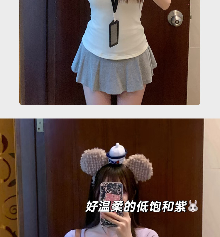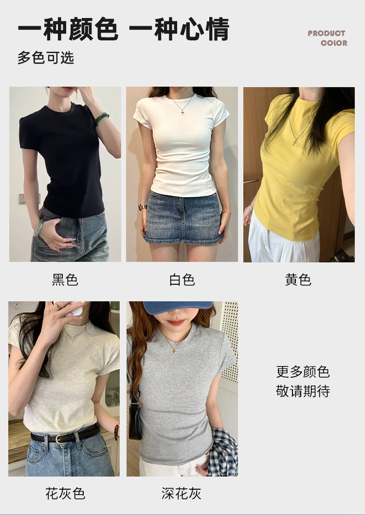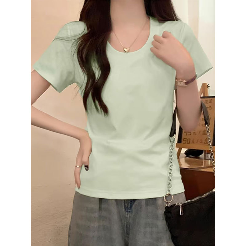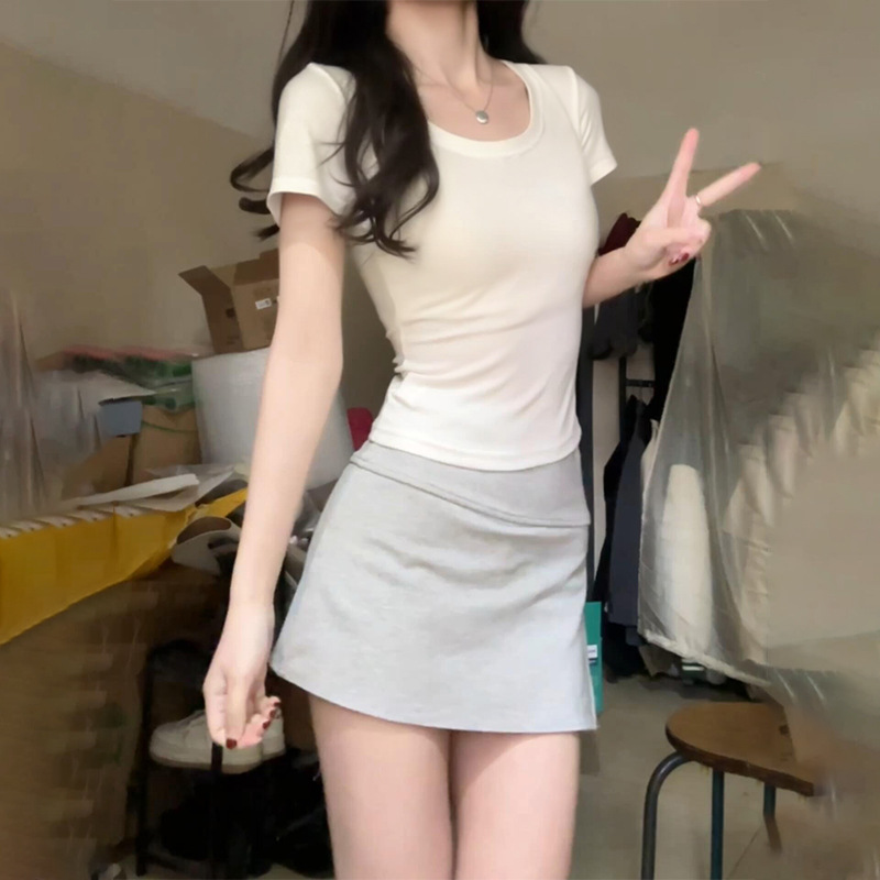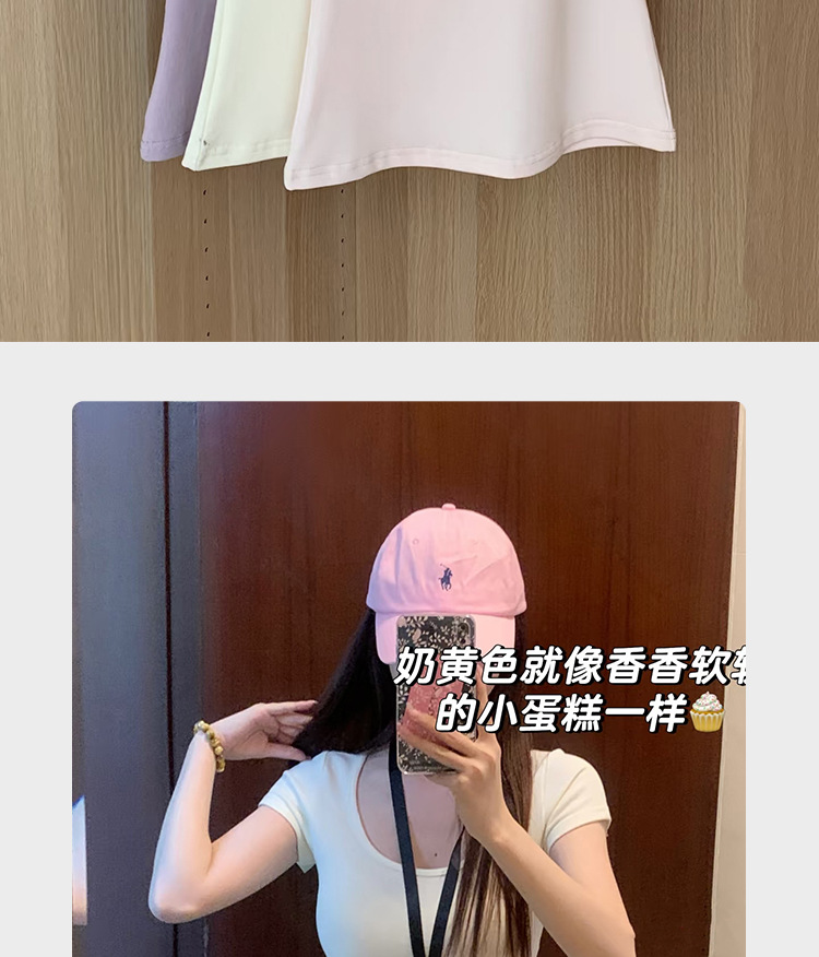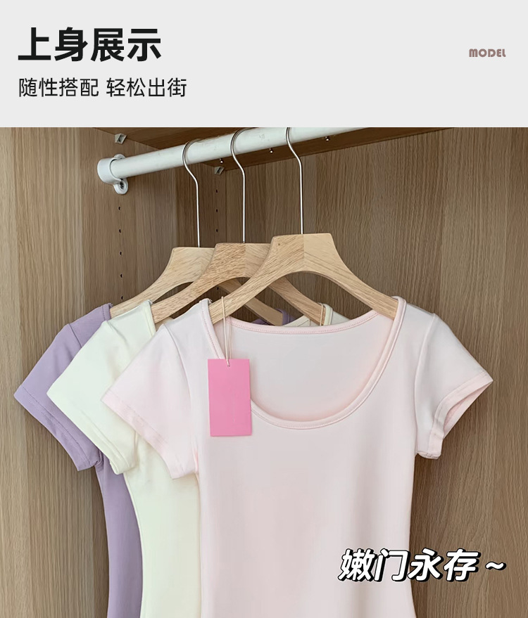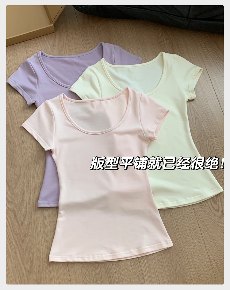 여성용 빅 네크라인 U 넥 오른쪽 어깨 반팔 티셔츠 여름 2025 새로운 스타일 허리 슬리밍 초여름 보라색 탑스토어 가기
