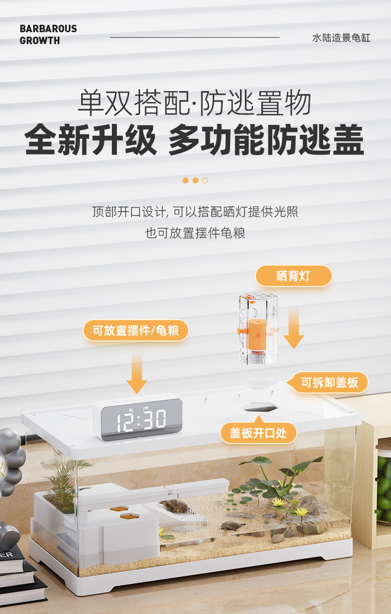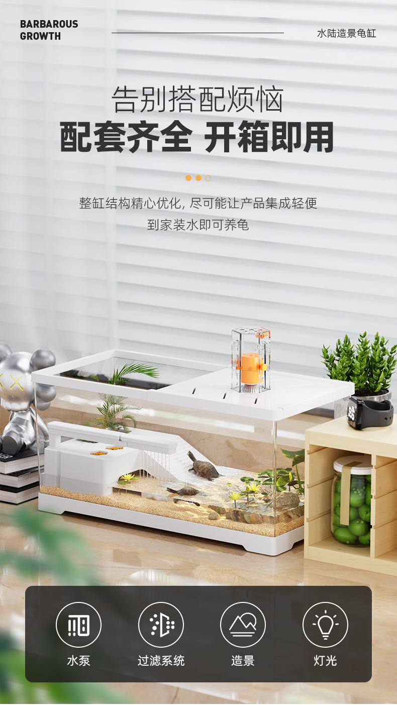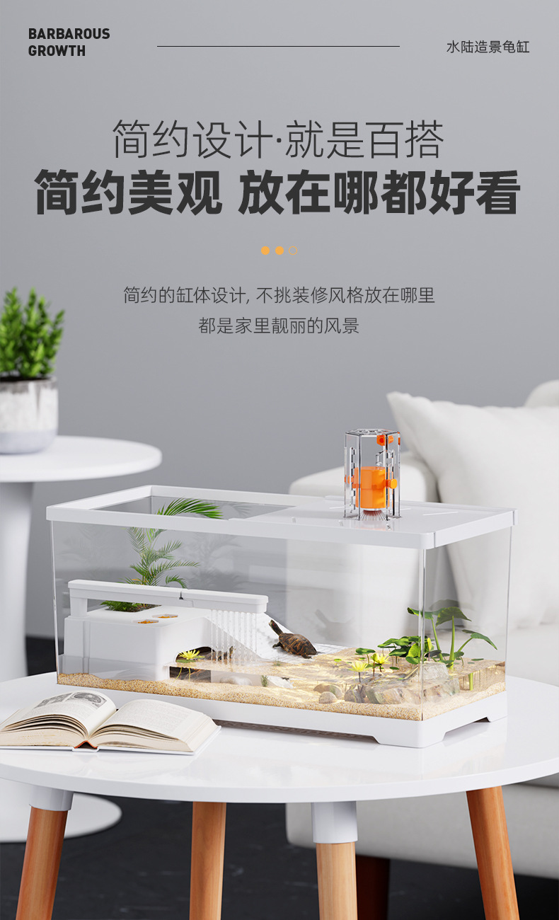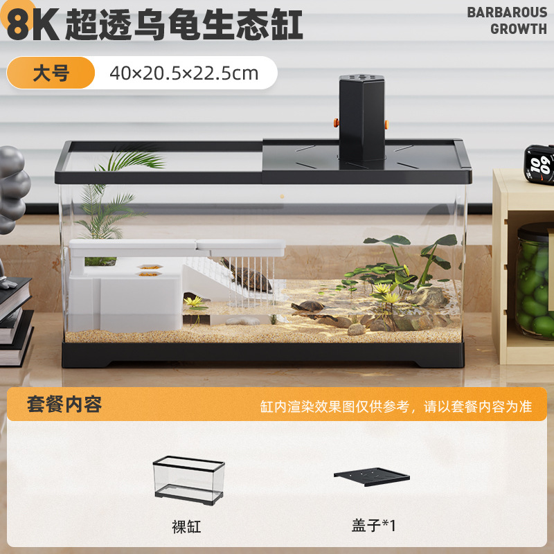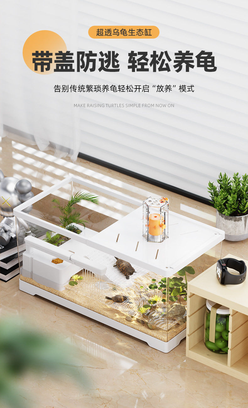 집에서 키우기에 적합한 아크릴 게으른 거북이 수조 플라스틱 생태 조경 작은 빌라(태양광 플랫폼 포함)스토어 가기