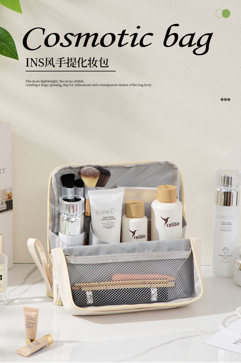 PU 화장품 가방 대용량 핸드백 휴대용 여행 필수품 분할 필통 화장품 수납 가방