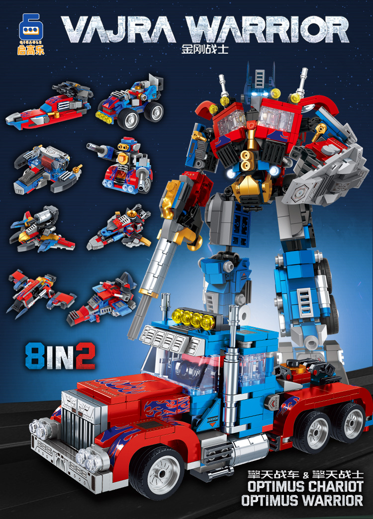무료 배송, 뜨거운 판매, 국내 호환 레고 옵티머스 워리어 8-in-2 변형 메카 작은 입자 교육 조립 빌딩 블록스토어 가기