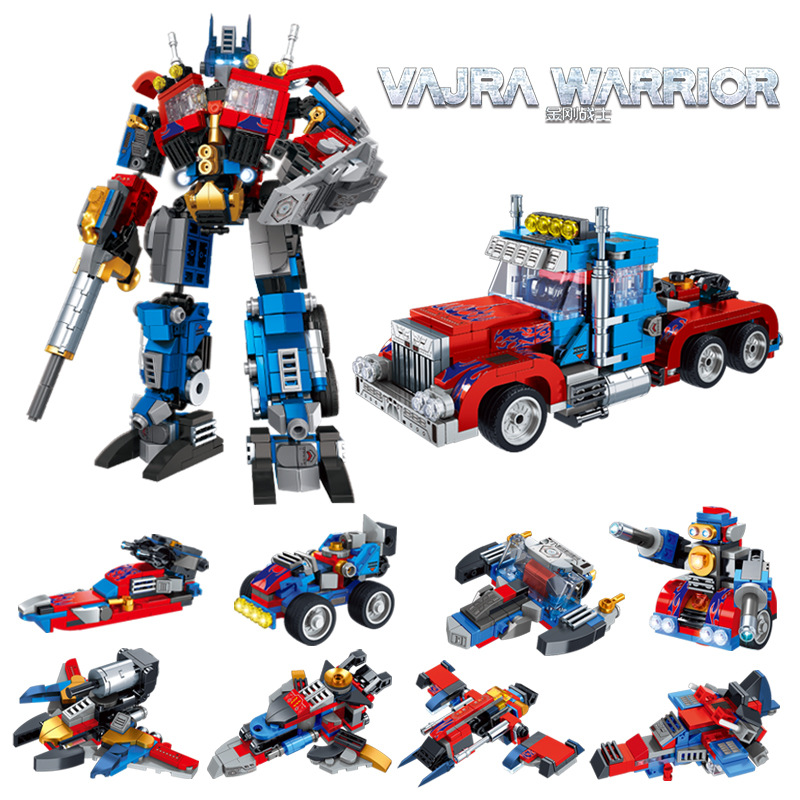 무료 배송, 뜨거운 판매, 국내 호환 레고 옵티머스 워리어 8-in-2 변형 메카 작은 입자 교육 조립 빌딩 블록
