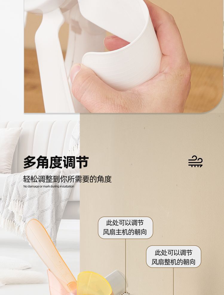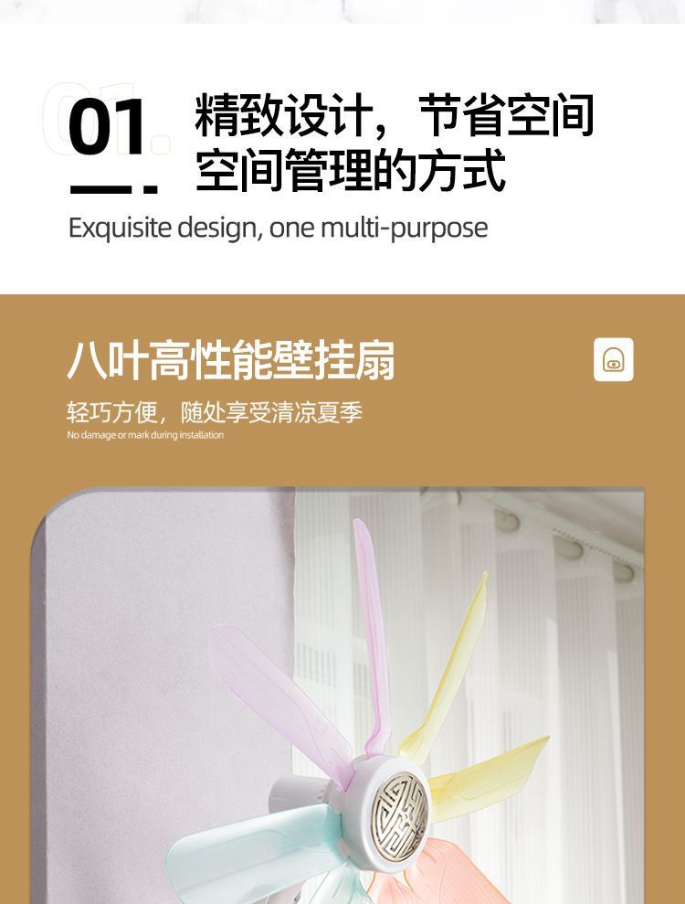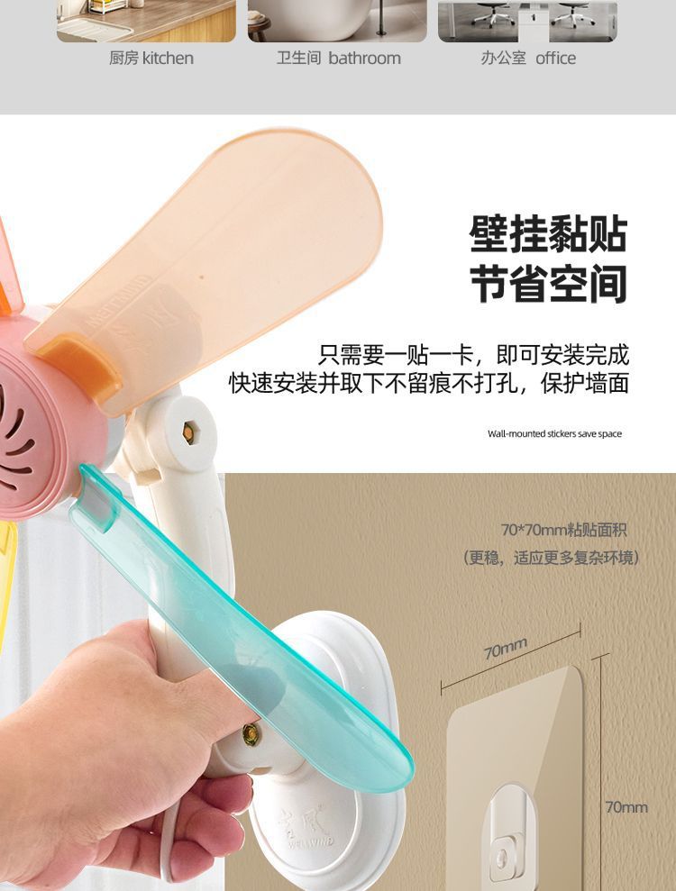 팬 벽걸이형 미니 가정용 학생 기숙사 침대 옆 주방 욕실 펀치 없음 설치 없음 Xiao Pengrui