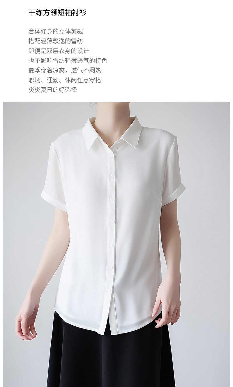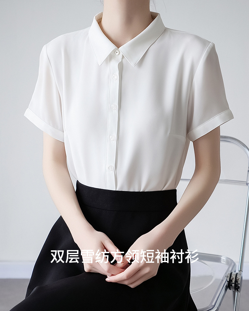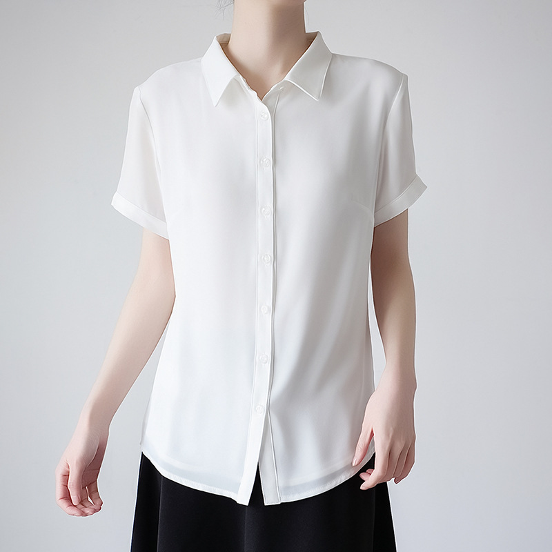 화이트 쉬폰 셔츠 여성 반팔 여름 학생 인터뷰 경력 착용 원피스 셔츠 공무원 세트 인테리어