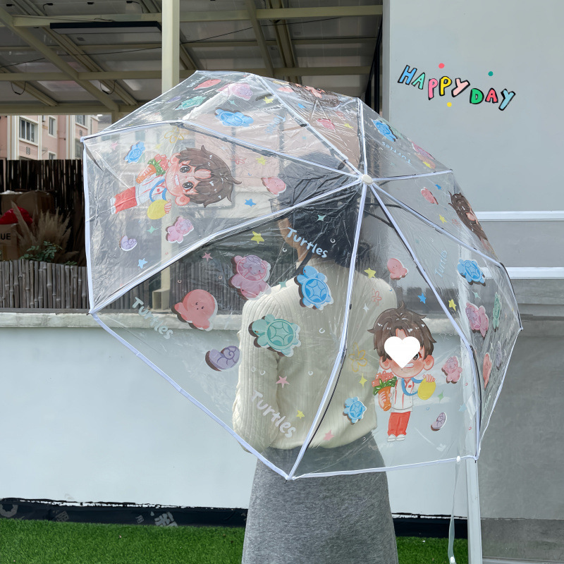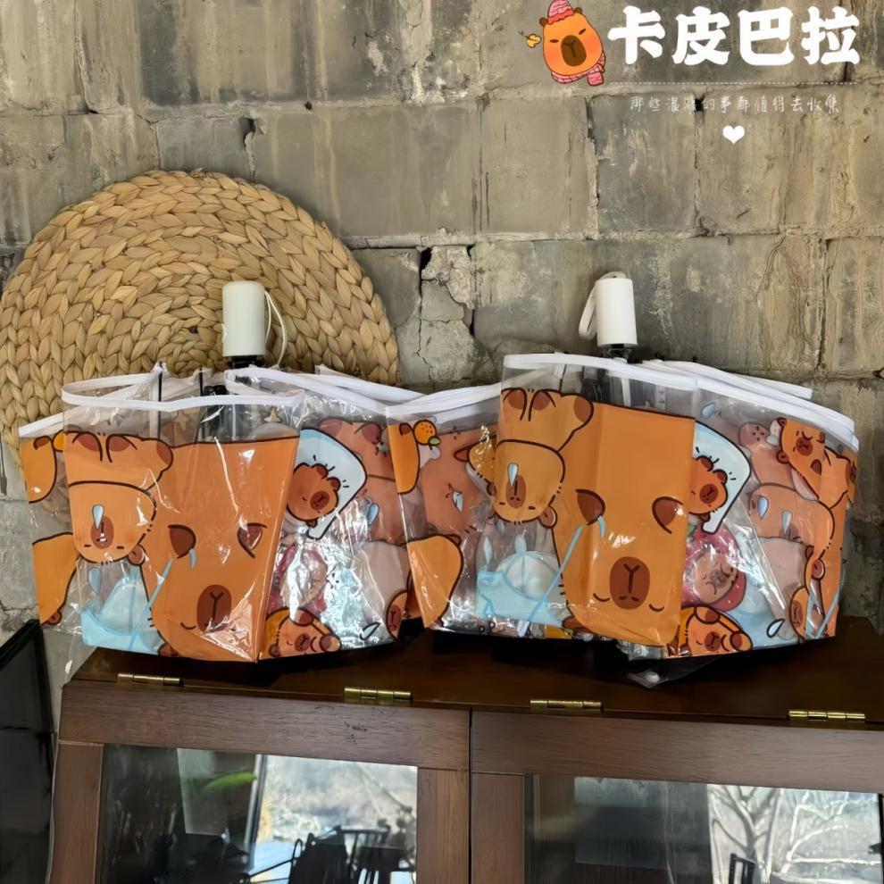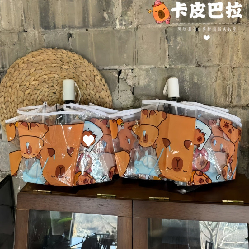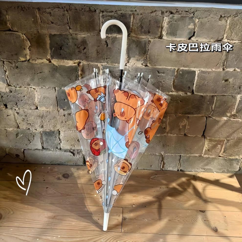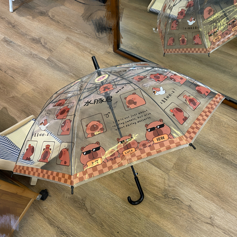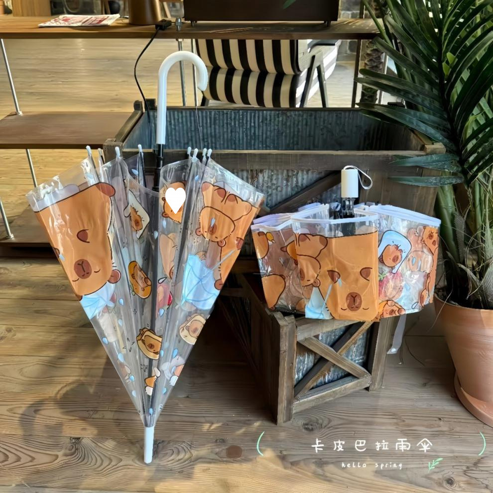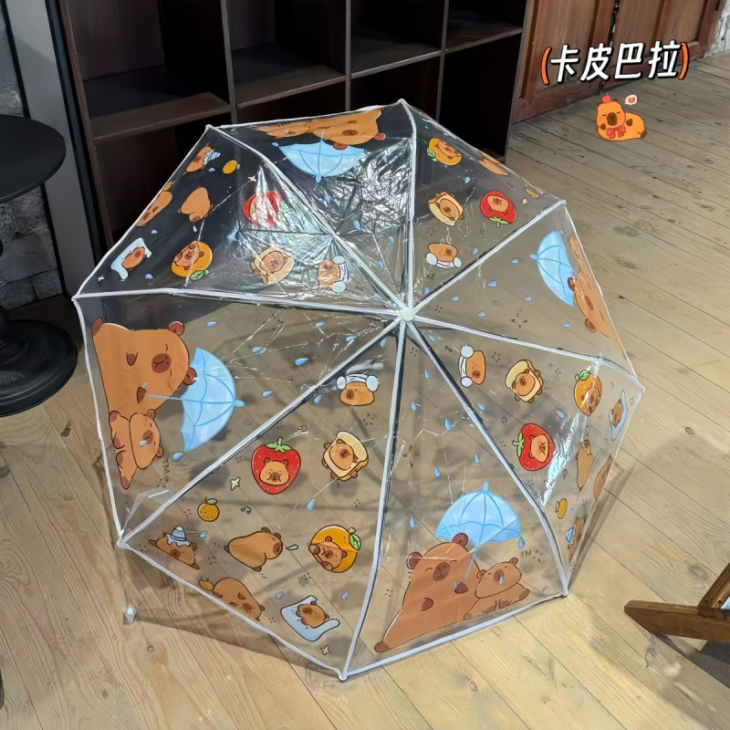 접이식 카피바라 귀여운 만화 긴 손잡이 고가치 자동 투명 신선한 학생 어린이 우산 두꺼운스토어 가기