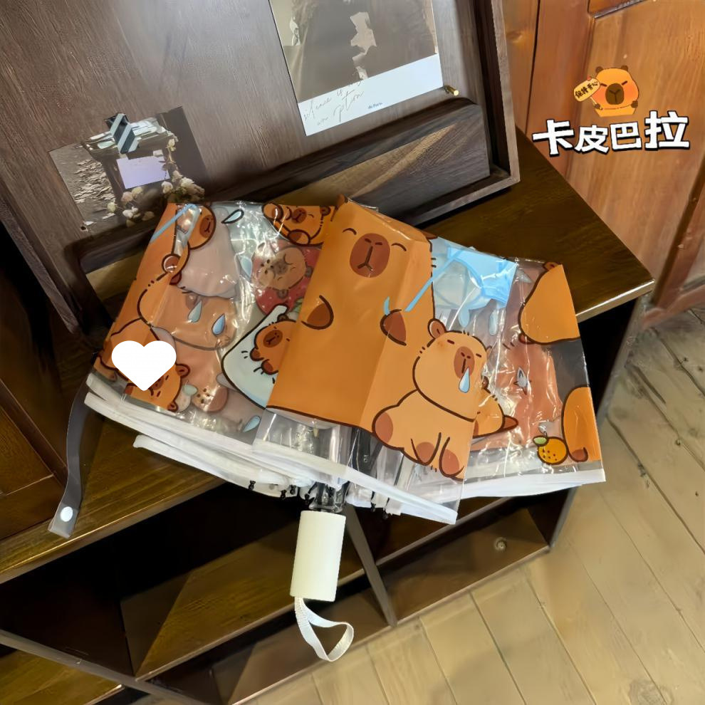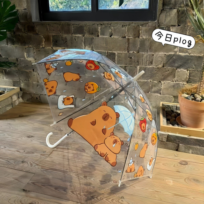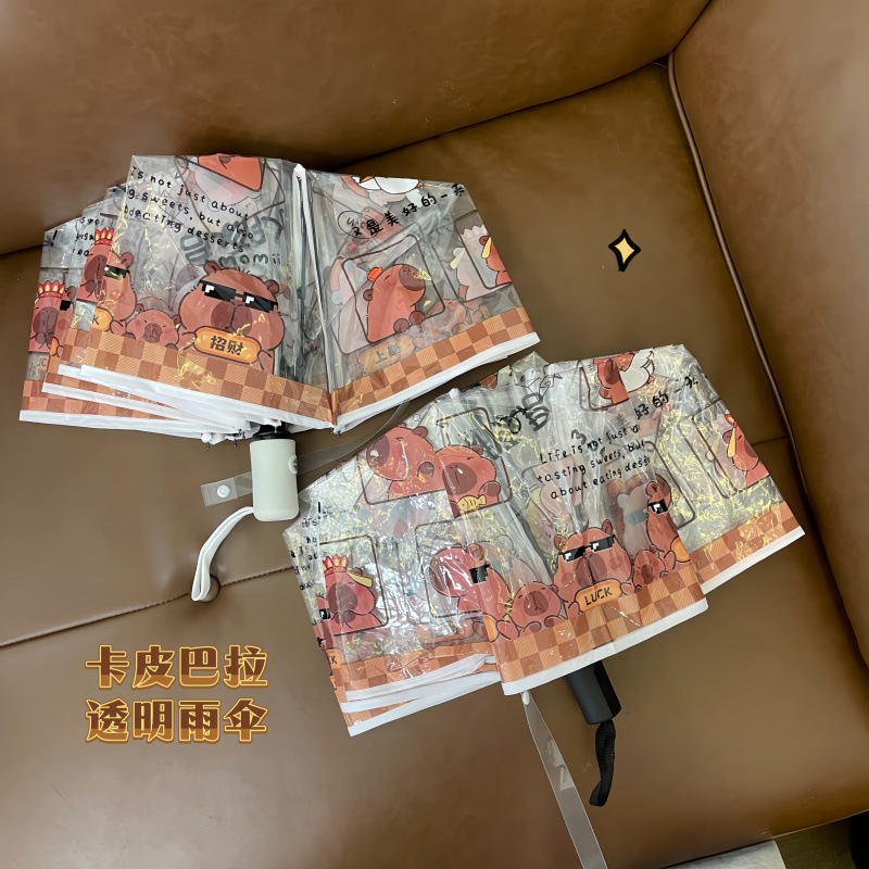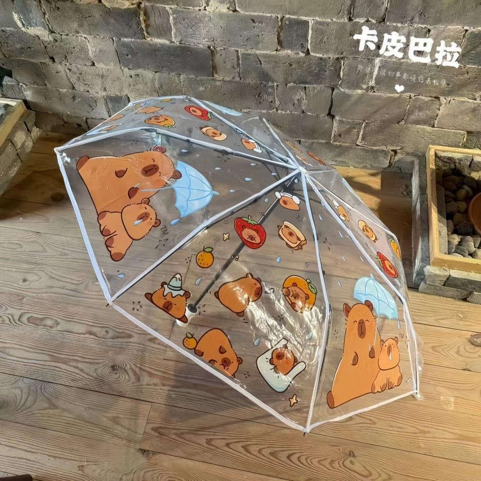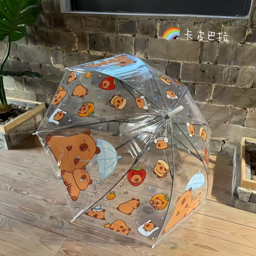 접이식 카피바라 귀여운 만화 긴 손잡이 고가치 자동 투명 신선한 학생 어린이 우산 두꺼운