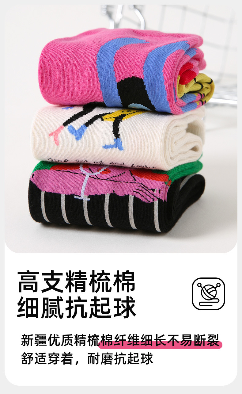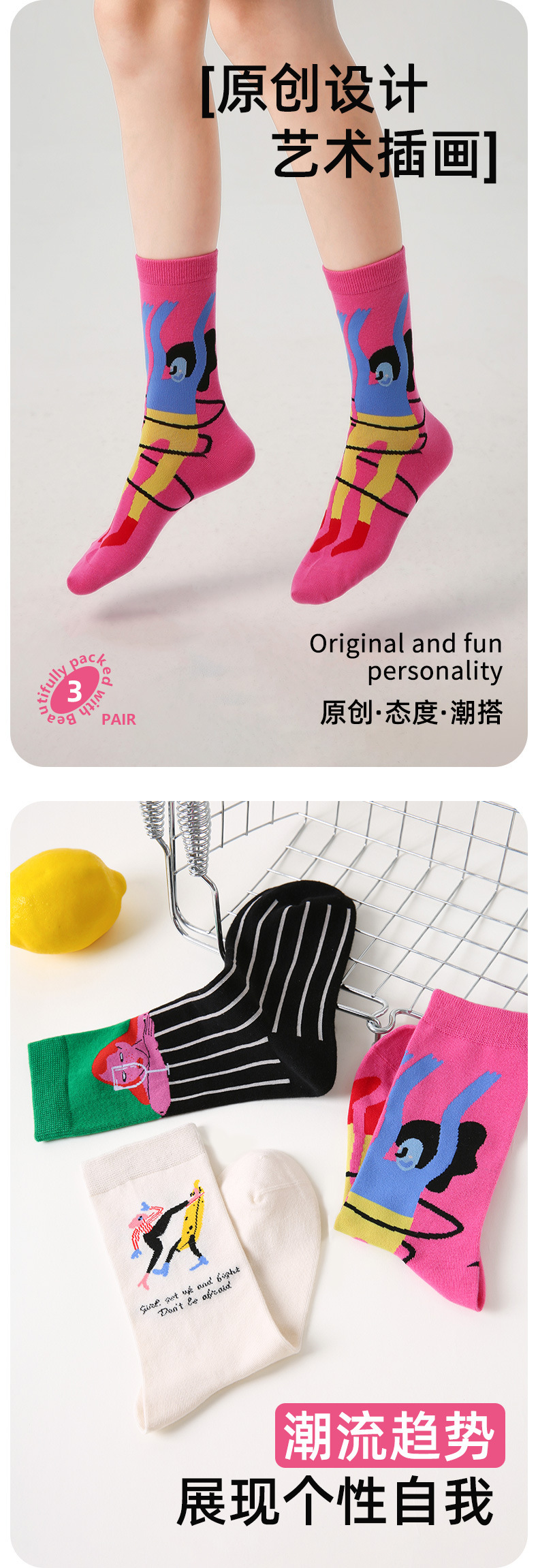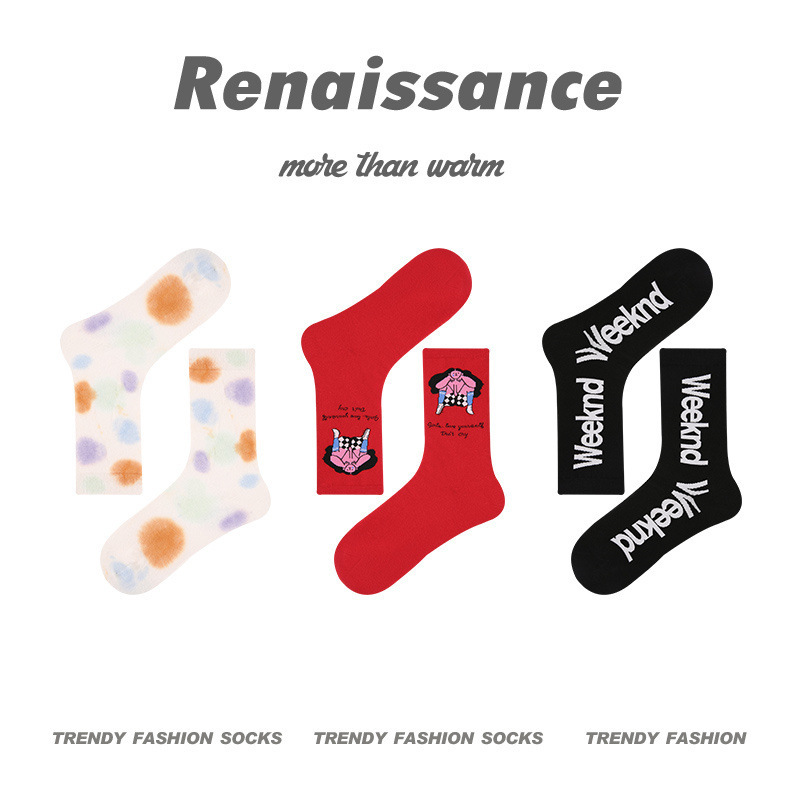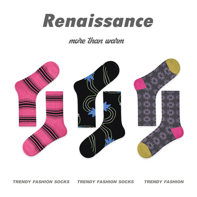 3 쌍-르네상스 오리지널 디자인 여성 양말 가을 새로운 예술 복고풍 유행 양말 박스형 여성용 콤비네이션 코튼 양말