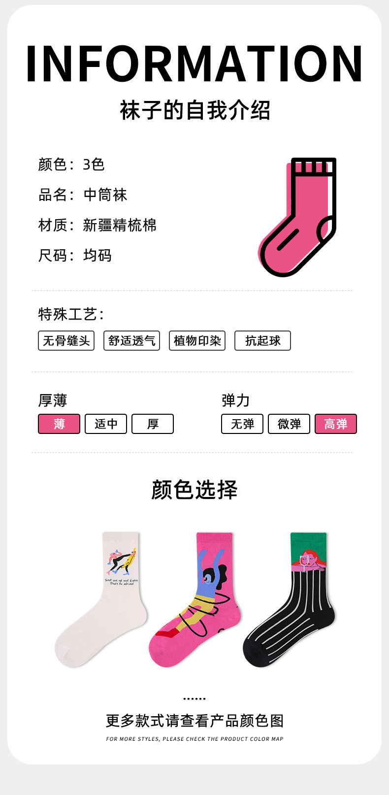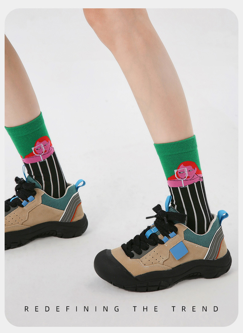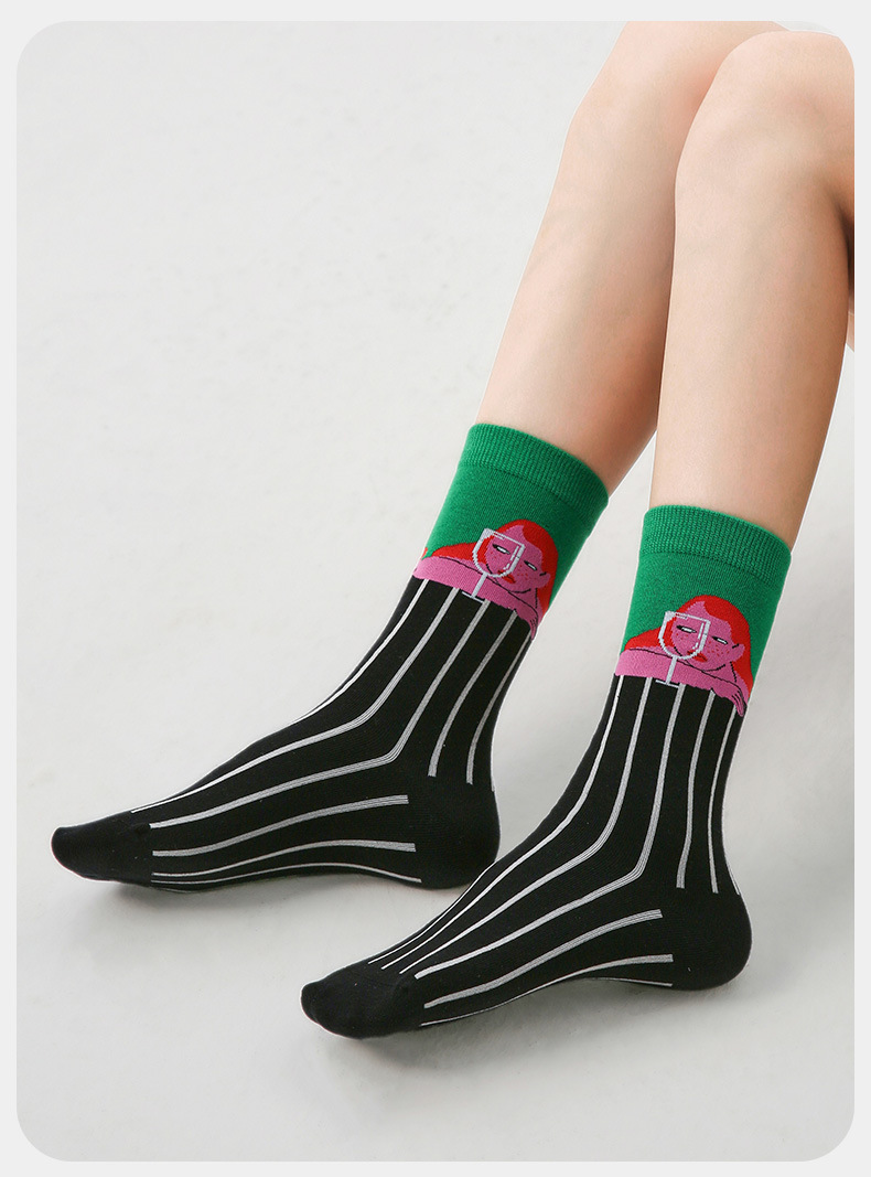 3 쌍-르네상스 오리지널 디자인 여성 양말 가을 새로운 예술 복고풍 유행 양말 박스형 여성용 콤비네이션 코튼 양말