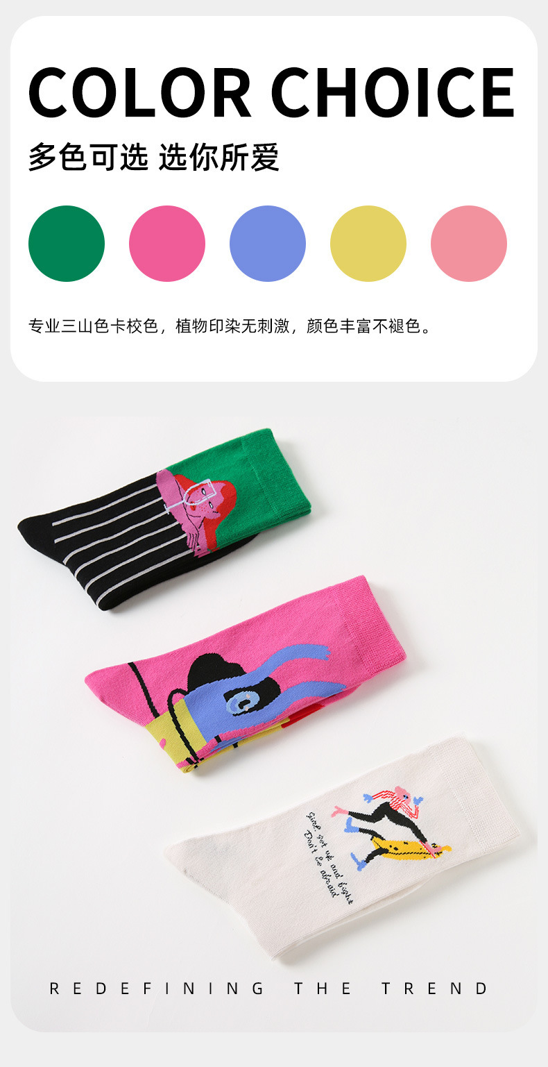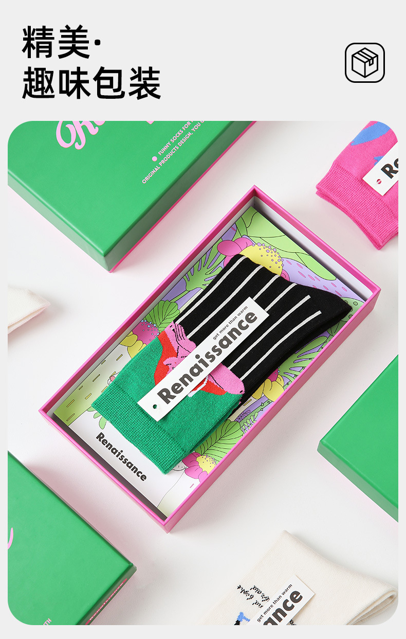 3 쌍-르네상스 오리지널 디자인 여성 양말 가을 새로운 예술 복고풍 유행 양말 박스형 여성용 콤비네이션 코튼 양말스토어 가기