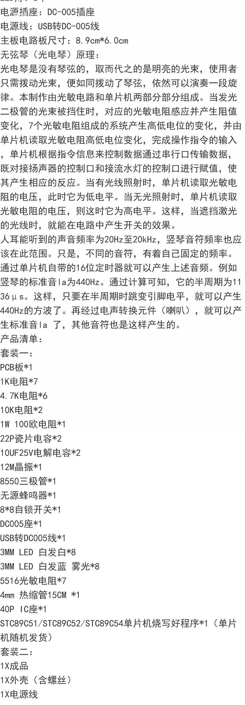 51 단일 칩 마이크로 컴퓨터 스트링리스 광전 피아노 키트 실험 음악 키리스 전자 레이저 피아노 DIY 생산 부품스토어 가기