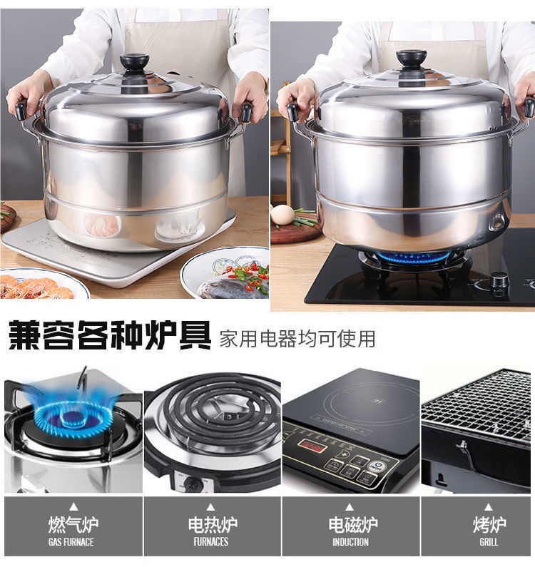도매 스테인레스 스틸 기선 대형 가정용 두꺼운 더블 레이어 유도 쿠커 가스 스토브 스팀 냄비 스팀 냄비 찜 냄비스토어 가기