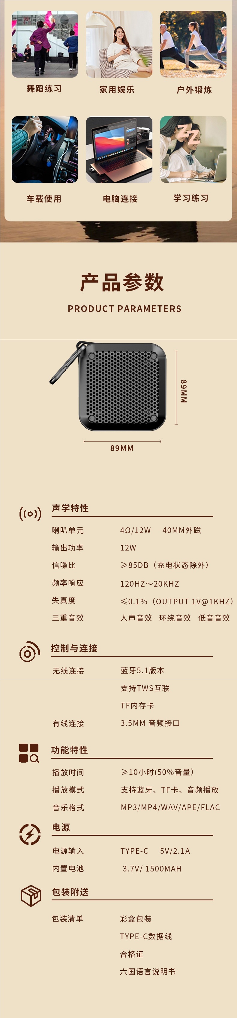 독일 중포포터블 블루투스 스피커 무선 휴대용 서브우퍼 TWS 인터넷 스퀘어 미니 소형 스피커 도매스토어 가기