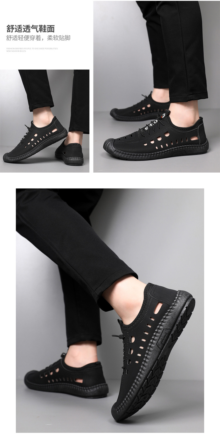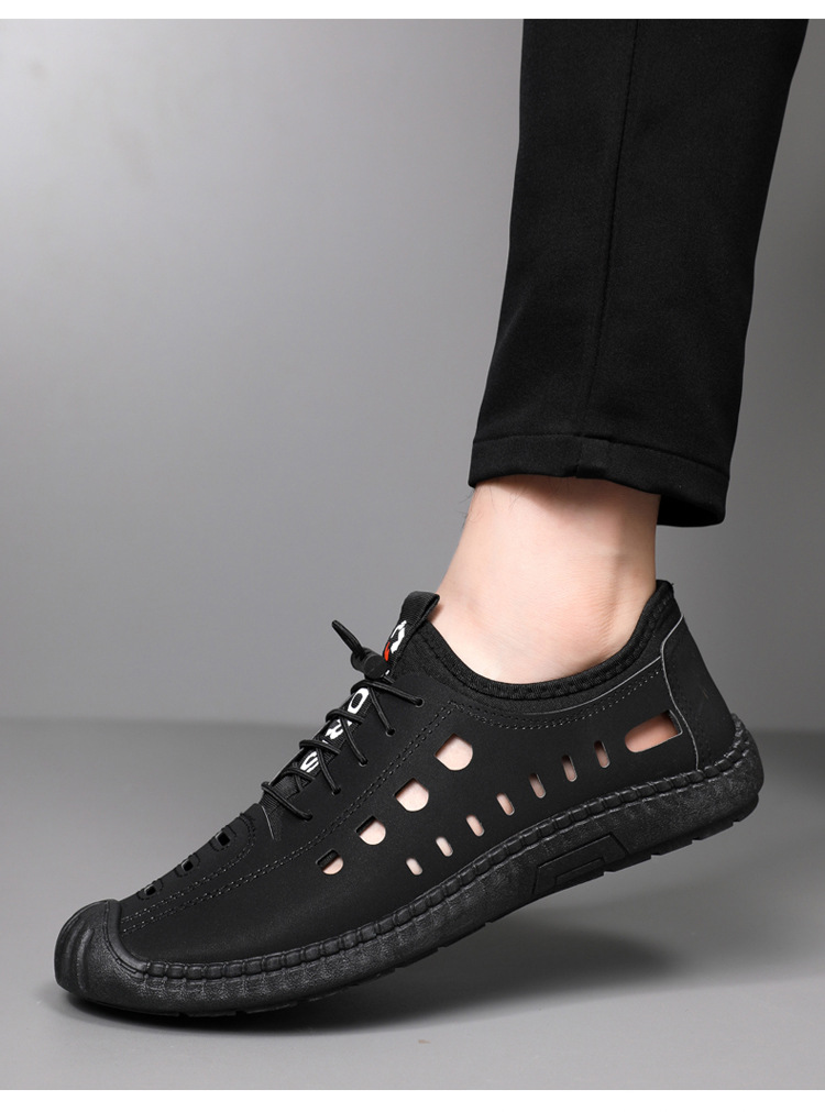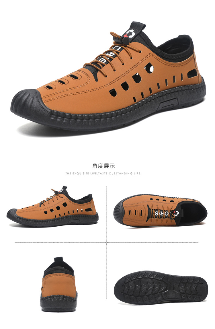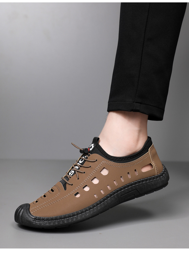 남성용 샌들 홀 신발 소프트 가죽 여름 가죽 표면 소프트 솔 미끄럼 방지 외부 착용 폐쇄 발가락 통기성 중공 캐주얼 가죽 신발