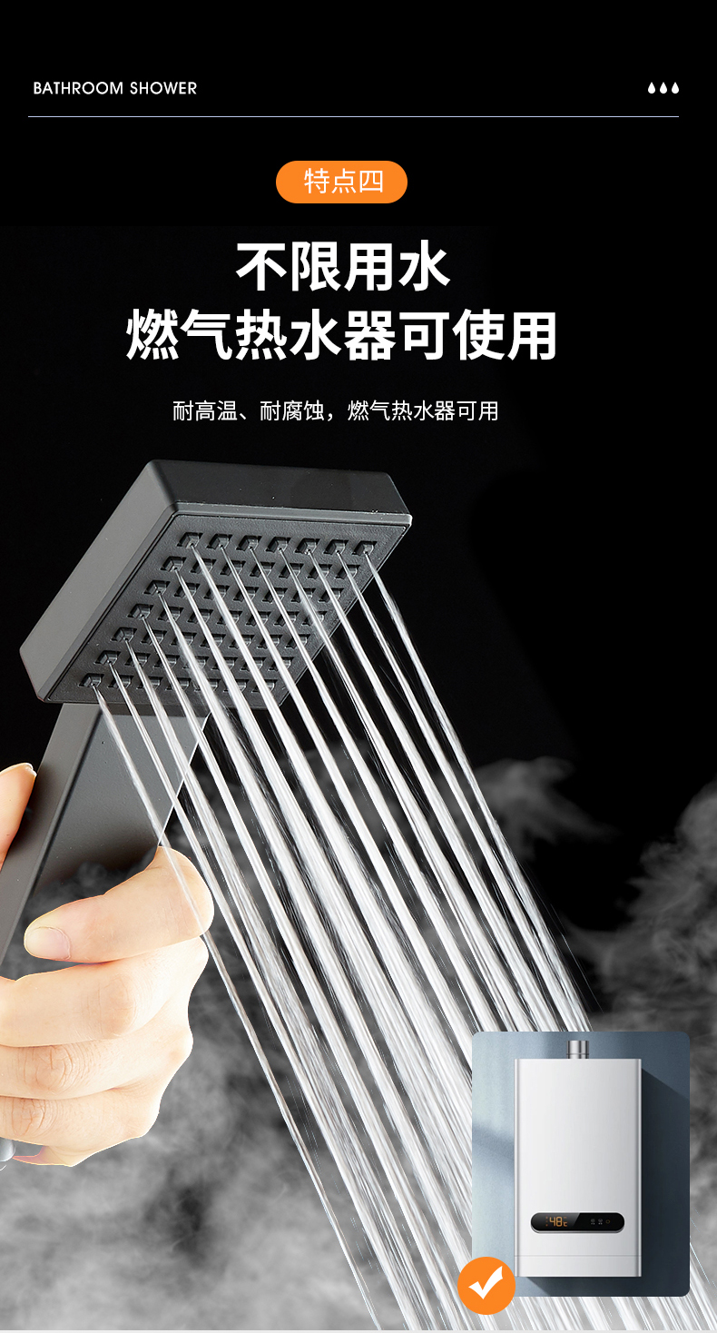 대용량 물량의 대형 샤워헤드, 거친 구멍, 비압 샤워, 싱글헤드 샤워, 욕실 사각 샤워헤드