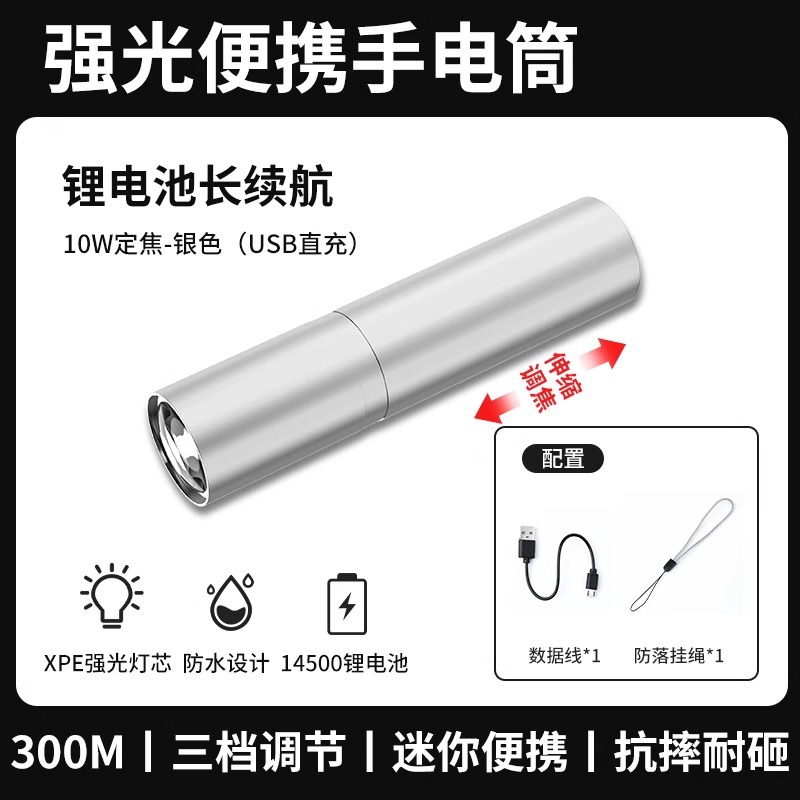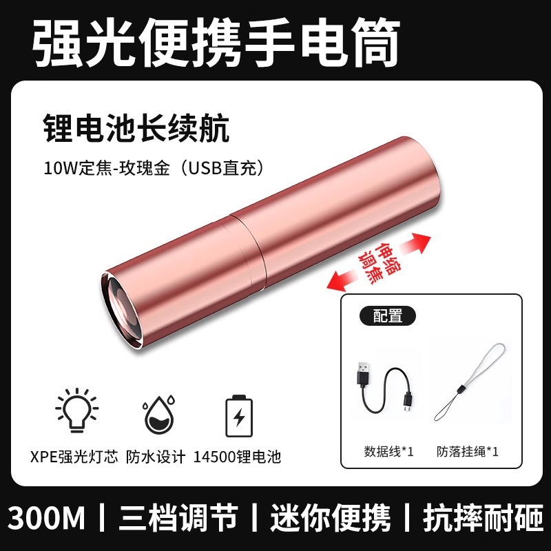 미니 손전등 강한 빛 슈퍼 밝은 충전식 장거리 램프 가정용 휴대용 어린이 눈 친화적 인 작은 LED 야외스토어 가기