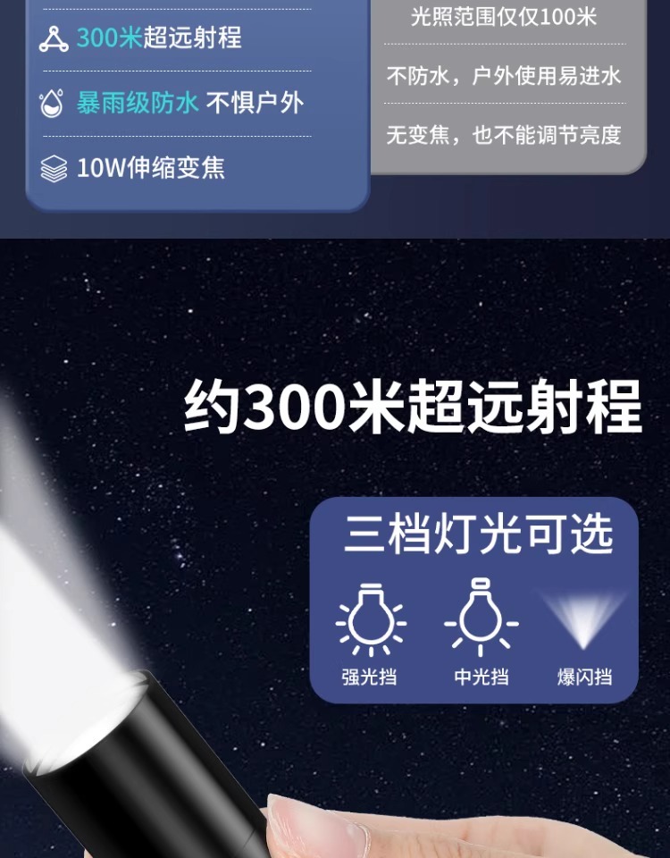 • [표준 모델] 10W 고정 초점 + 3단계 조절 + 낙하 방지 랜야드 + 매우 긴 배터리 수명(하오샤 실버)