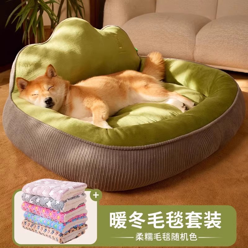 • [따뜻한 겨울 깊은 잠옷] 브라운 그린 백커 네스트 + 벨벳 두꺼운 담요