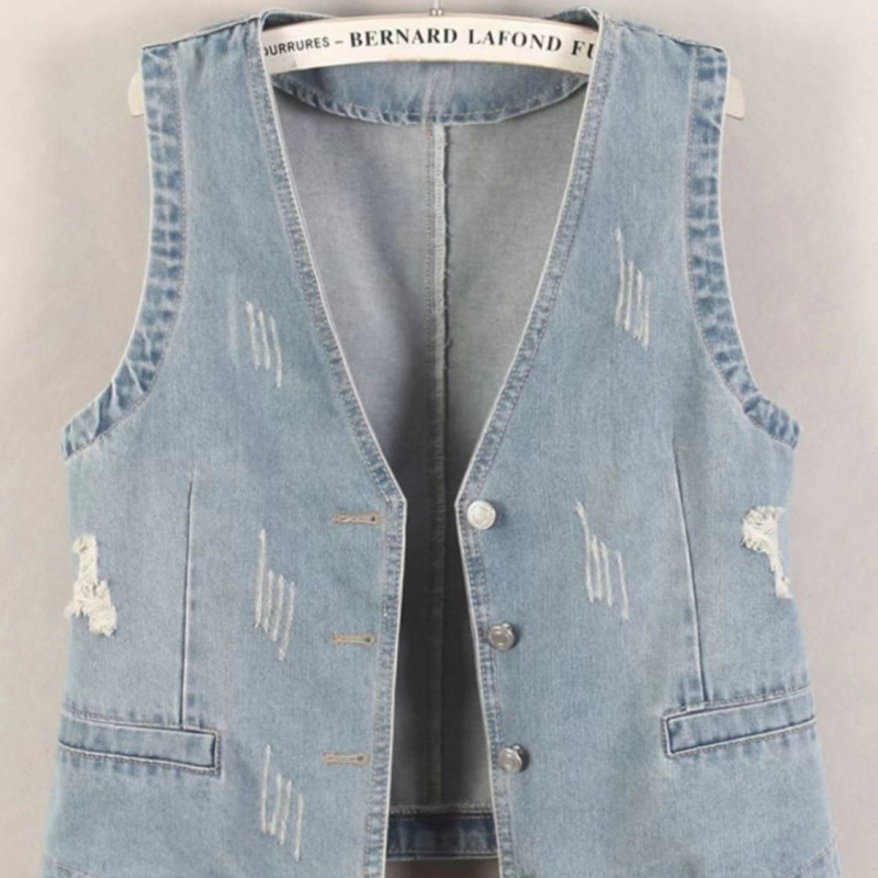 데님 조끼 여성 조끼 짧은 맞춤형 봄, 가을 새로운 민소매 캐주얼 작은 겉옷 슬림 v 넥 조끼 라이트 블루