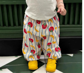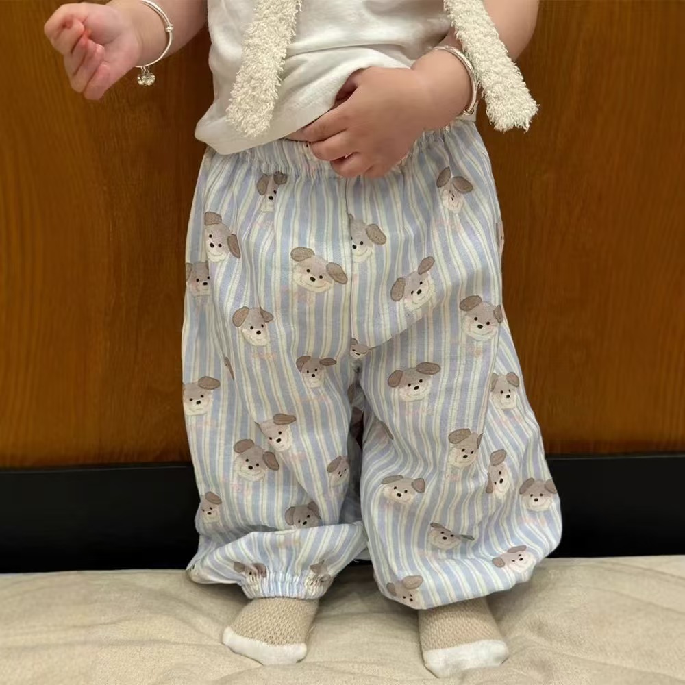 아기 안티 모기 바지 더블 레이어 원사 만화 인쇄 바지 아기 반팔 티셔츠 아기 여름 옷 투피스 세트스토어 가기