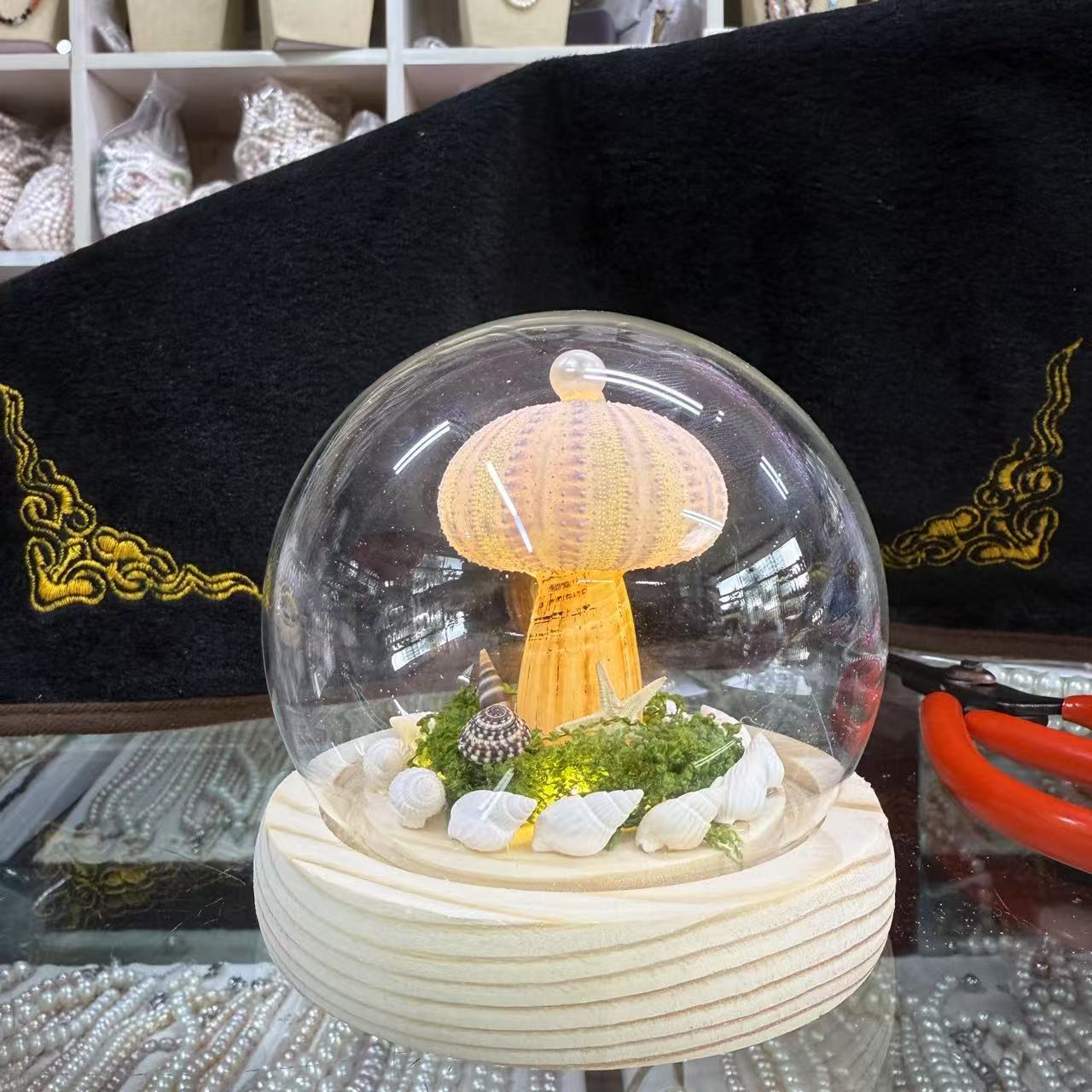 크리 에이 티브 조개와 성게 수제 야간 조명 하이 엔드 침실 데스크탑 장식 선물 유리 커버 선물 장식품스토어 가기