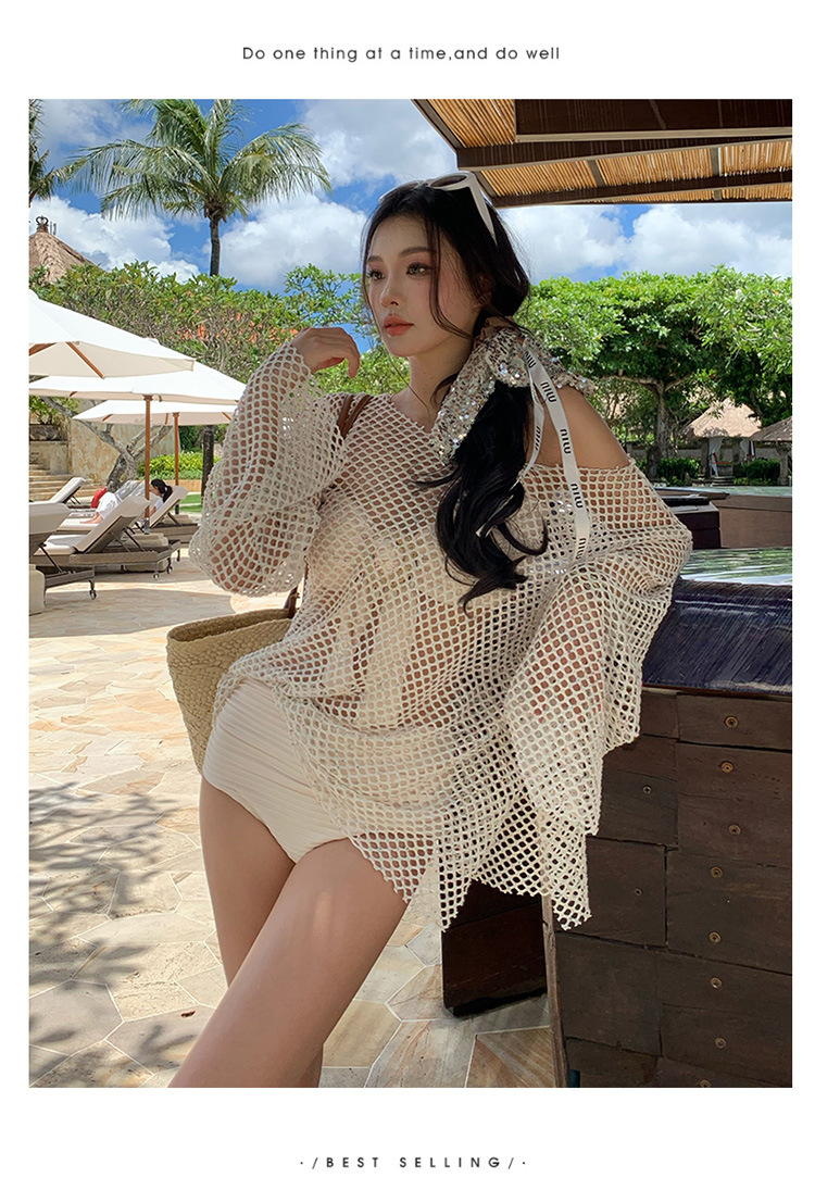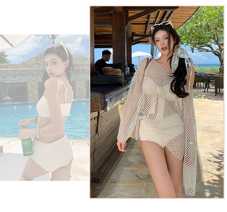 새로운 분할 수영복 여성 해변 휴가 슬리밍 살짝 덮은 긴 소매 비키니 3 피스 세트 섹시한 순수 수영복스토어 가기