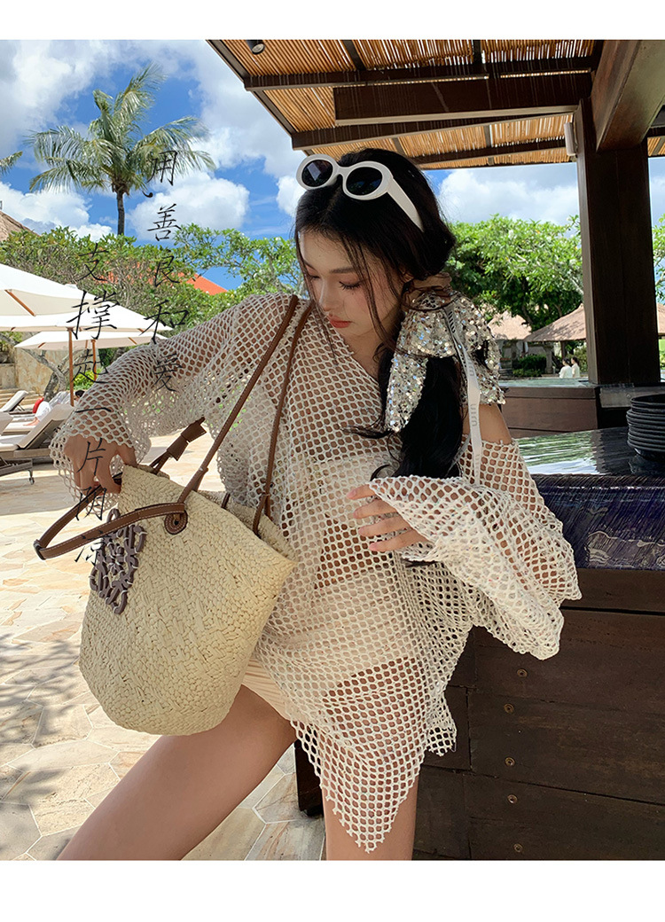새로운 분할 수영복 여성 해변 휴가 슬리밍 살짝 덮은 긴 소매 비키니 3 피스 세트 섹시한 순수 수영복