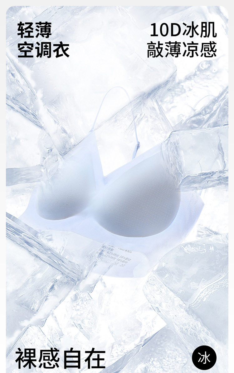Douyin 여성용 인기 얼음 실크 무봉제 속옷 여름 초박형 푸시업 처짐 방지 유방 수축 와이어 프리 아름다운 등 브라