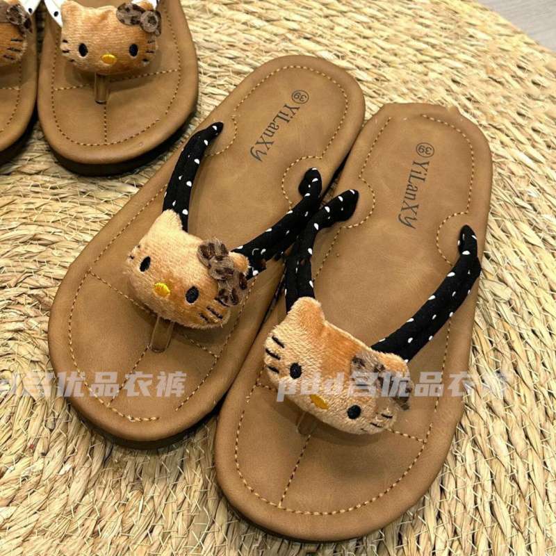 매우 부드럽고 내마모성이 뛰어난 플랫 힐, 달콤하고 클래식하며 활용도가 높은 폴카 도트 헬로키티 슬리퍼 헬로키티 슬리퍼스토어 가기