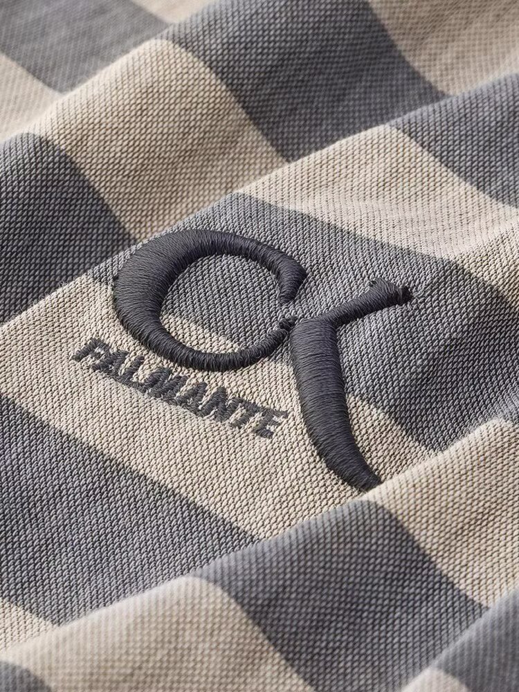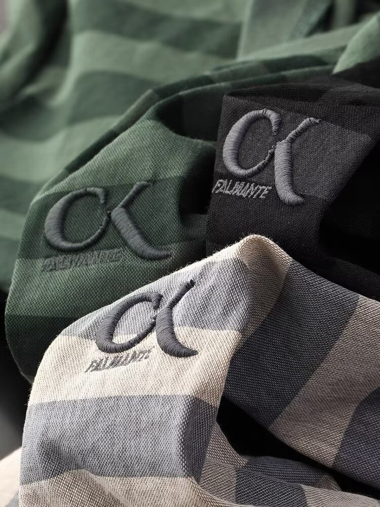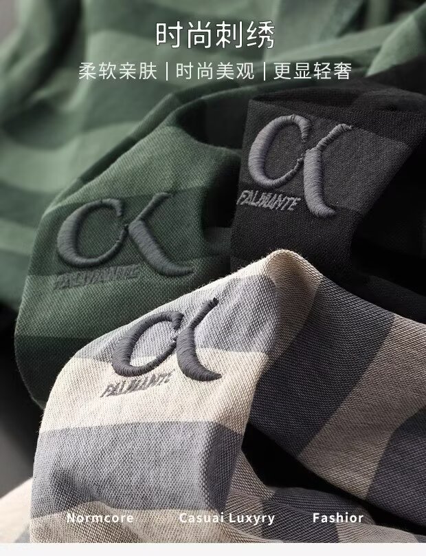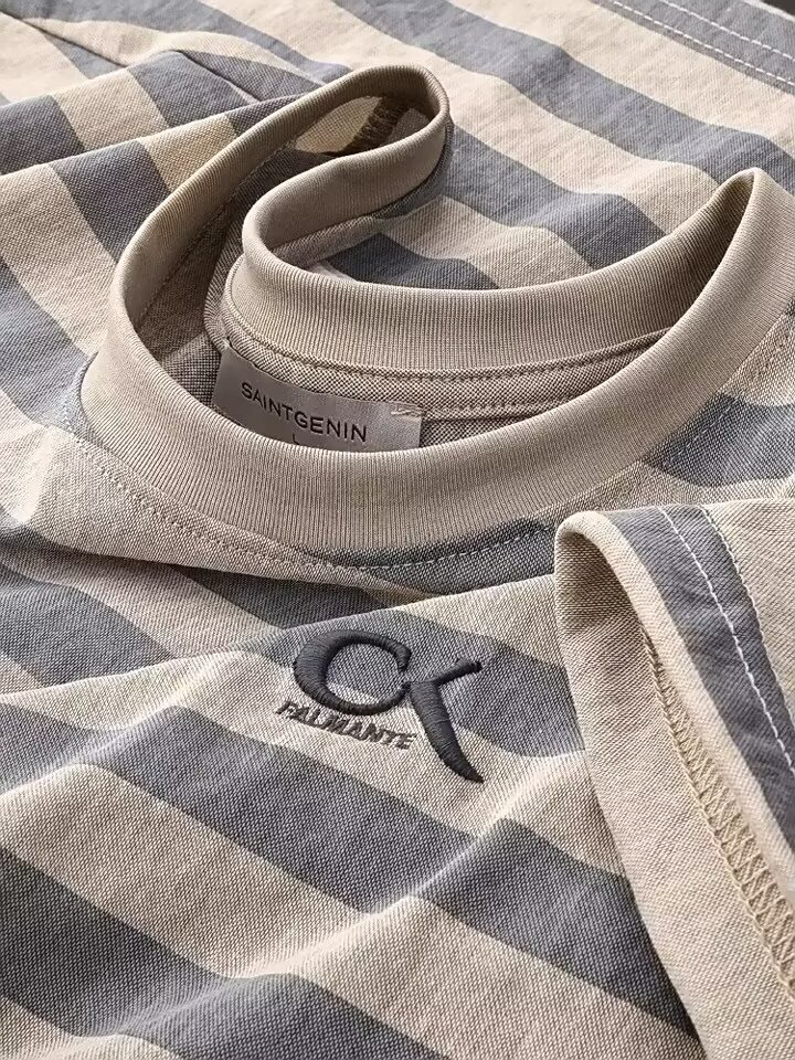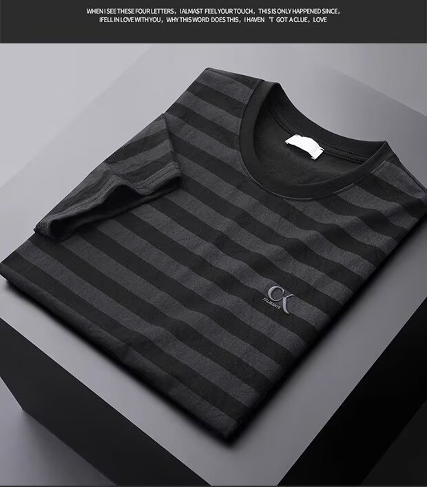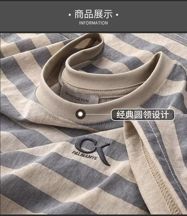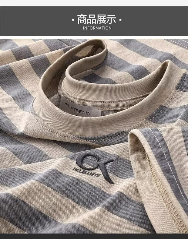 새로운 줄무늬 얼음 실크 모조 린넨 반팔 남성 슬림 여름 얇은 수 놓은 라운드 넥 반팔 티셔츠스토어 가기