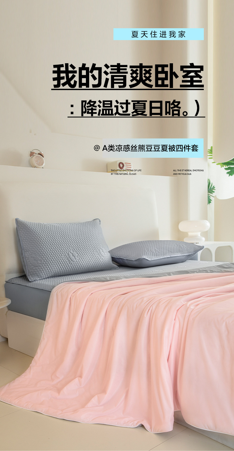 클래스 A 산모 및 유아용 여름 이불 4피스 시원한 얼음 실크 싱글 여름 이불 여름 에어컨 이불 기계 세탁 가능한 얇은 이불 3스토어 가기