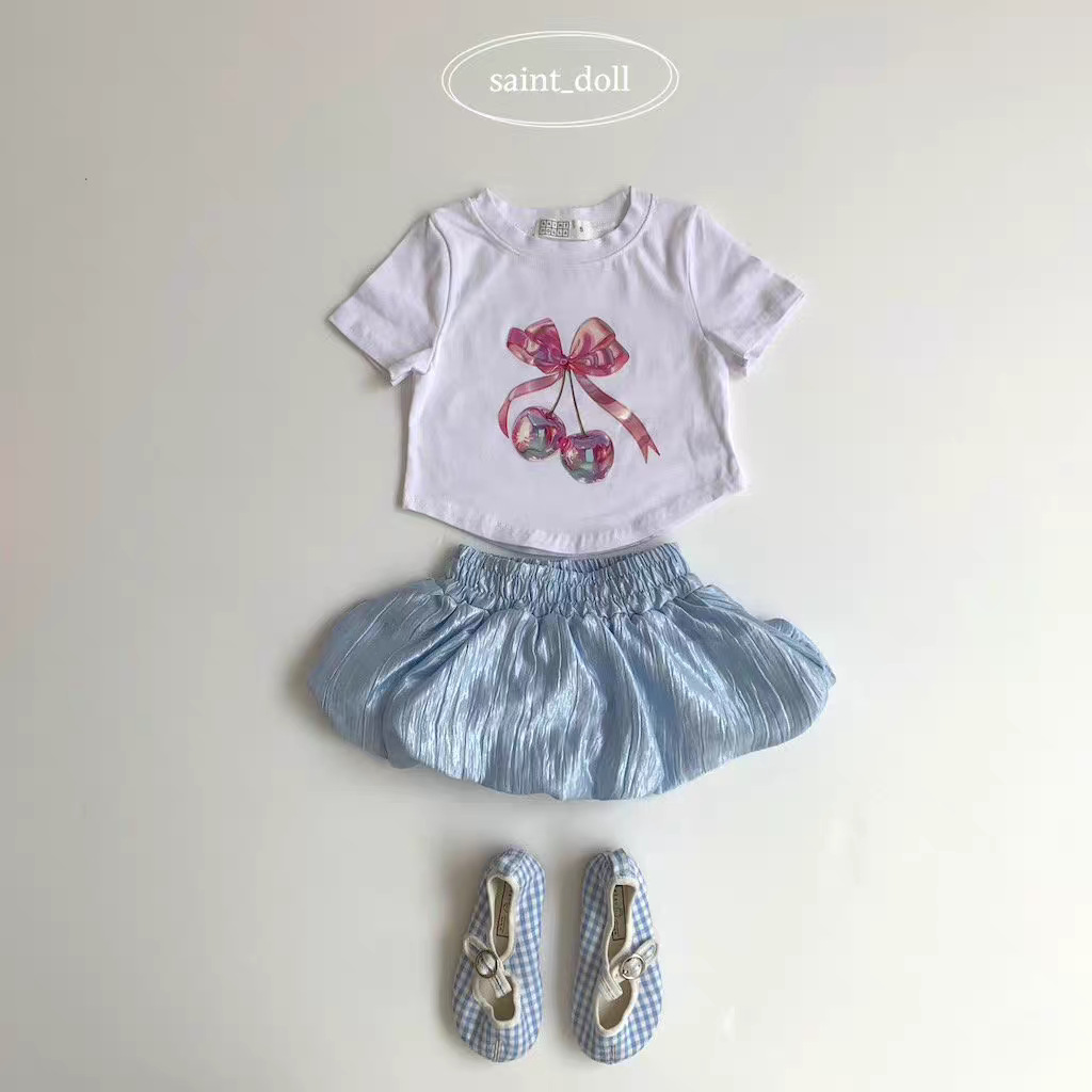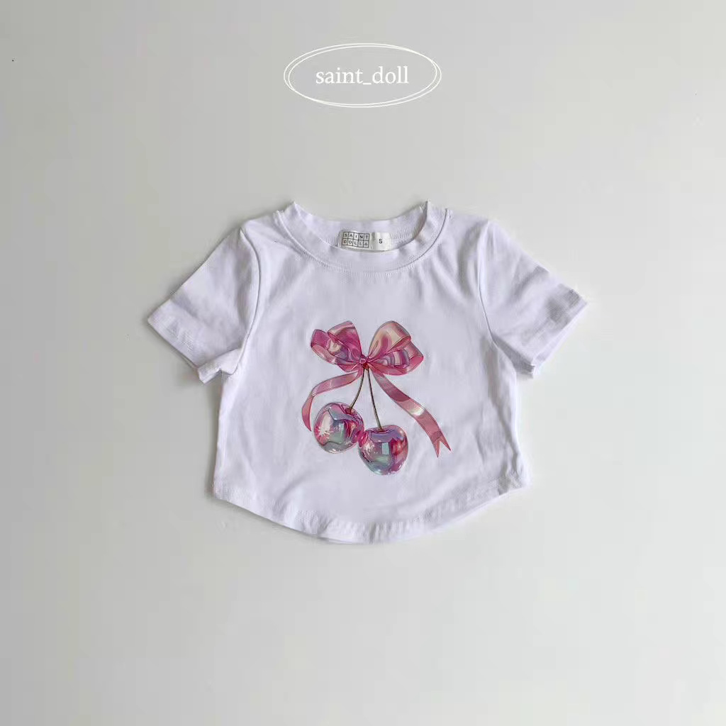 여름 한국 유행 아동복 2025 여름 큰 어린이 소녀 체리 프린트 반팔 티셔츠 새로운