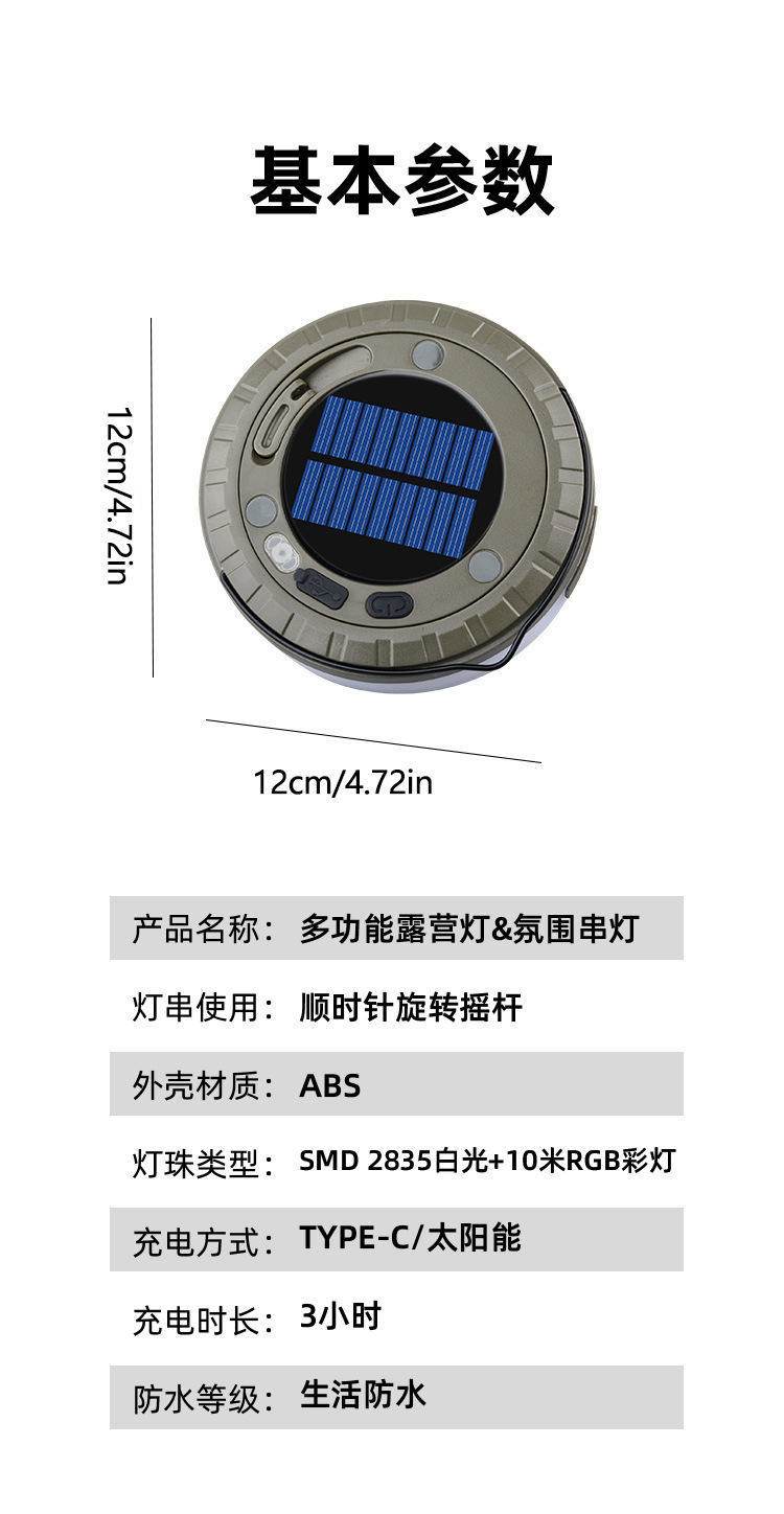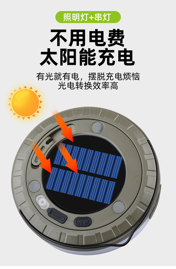 캠핑 조명 다채로운 스트링 주변 조명 태양열 충전 다기능 야외 강한 빛 조명 캠핑 텐트 조명