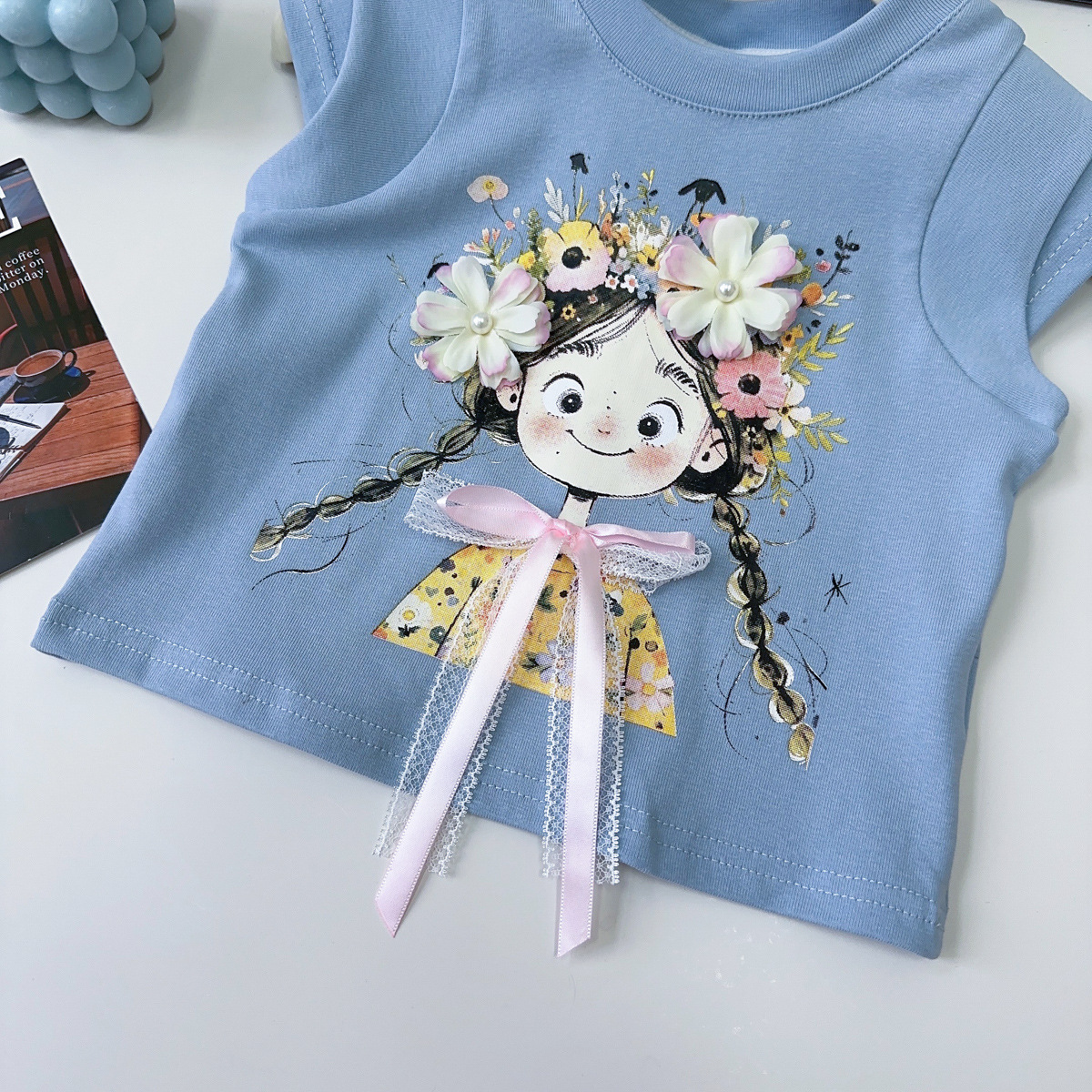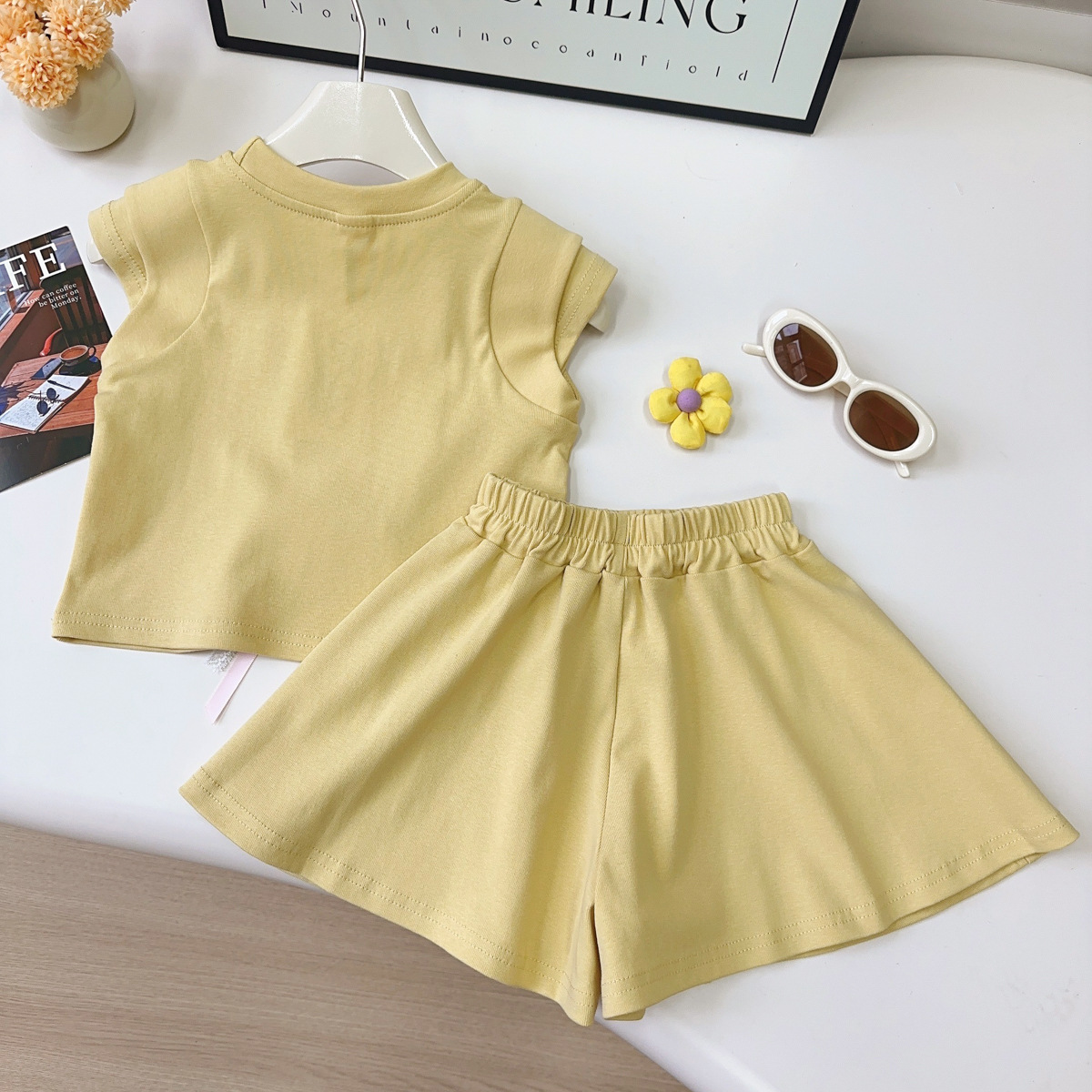 아동복 새 여름 여자 아기 귀엽고 세련된 루즈 캐주얼 반팔 탑 반바지 한국식 투피스 세트