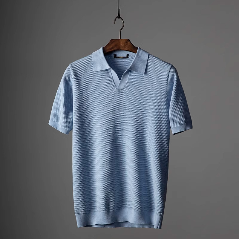 파인애플 질감 여름 갈매기 칼라 통기성 가벼운 칼라 반팔 남성 패션 캐주얼 스웨터 탑 트렌디