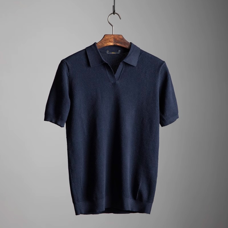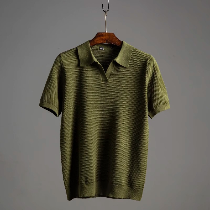 파인애플 질감 여름 갈매기 칼라 통기성 가벼운 칼라 반팔 남성 패션 캐주얼 스웨터 탑 트렌디스토어 가기