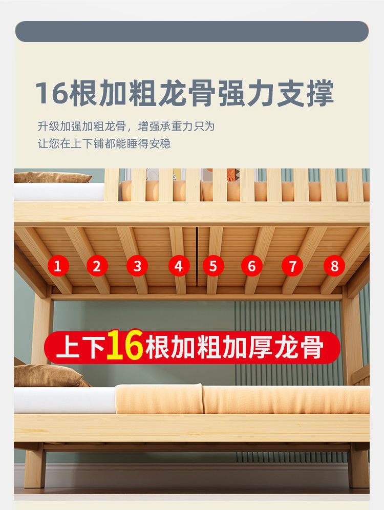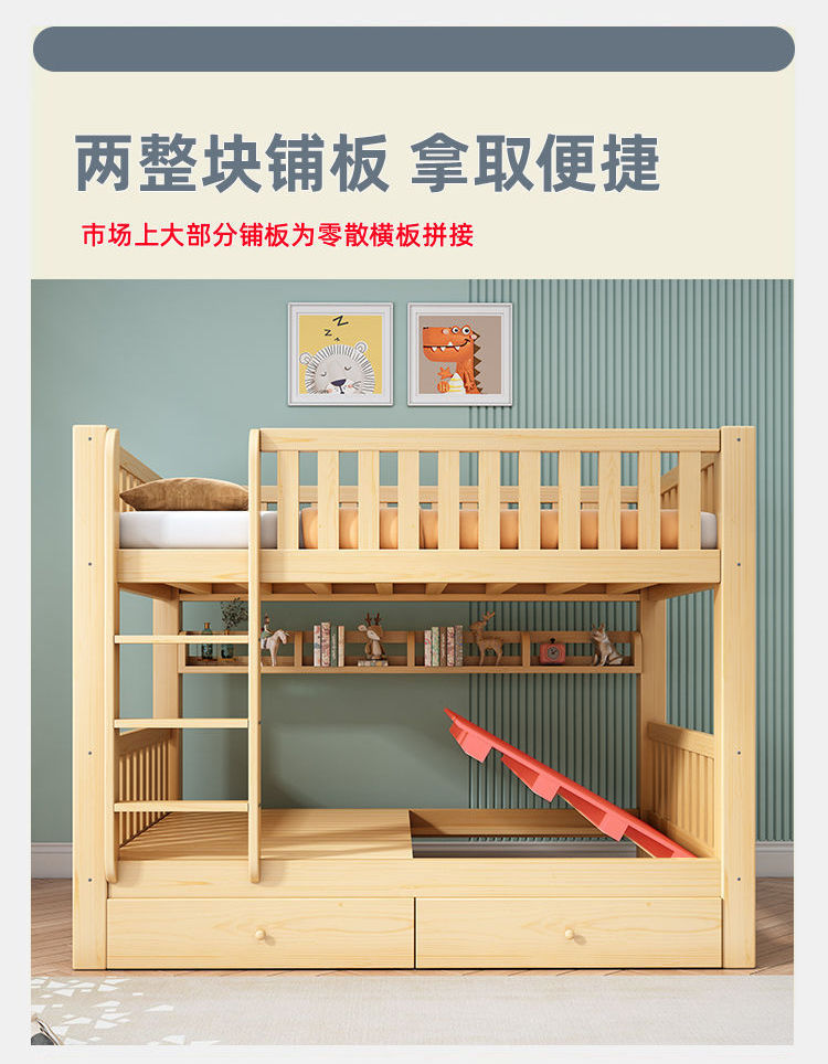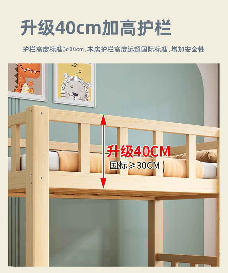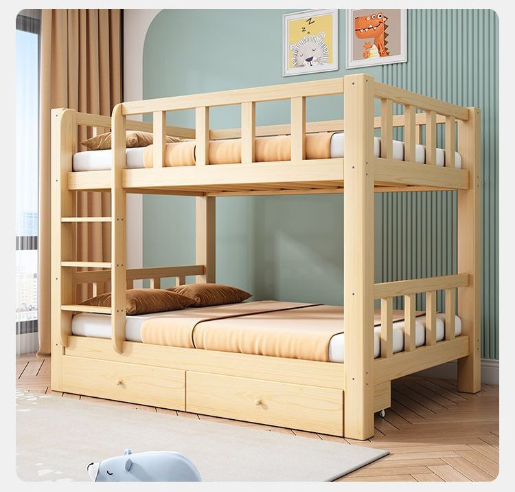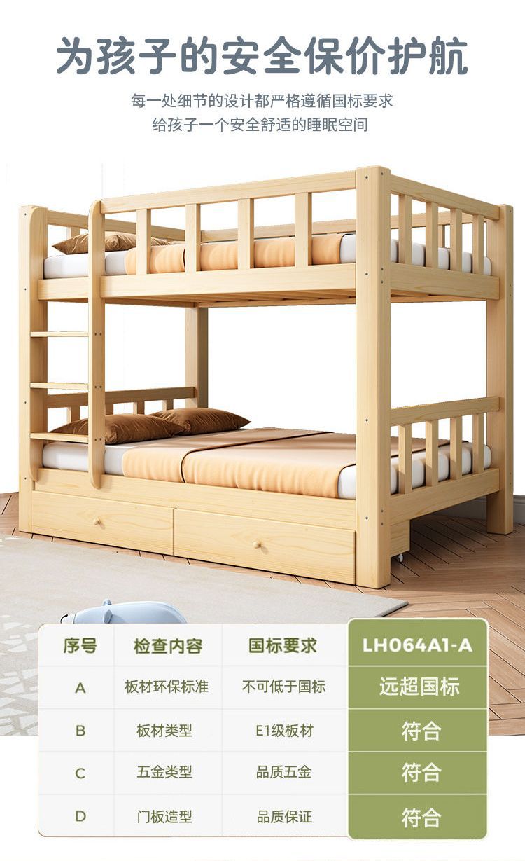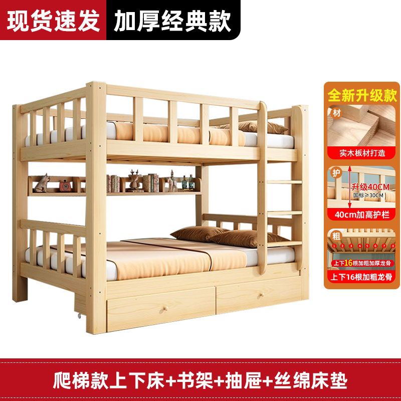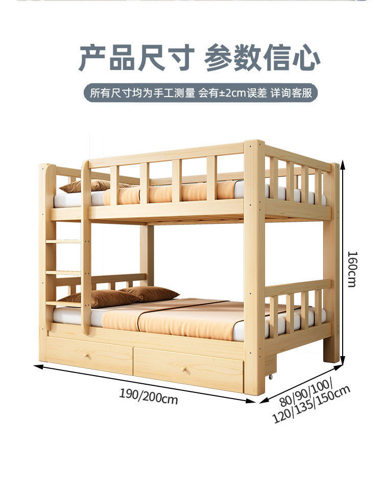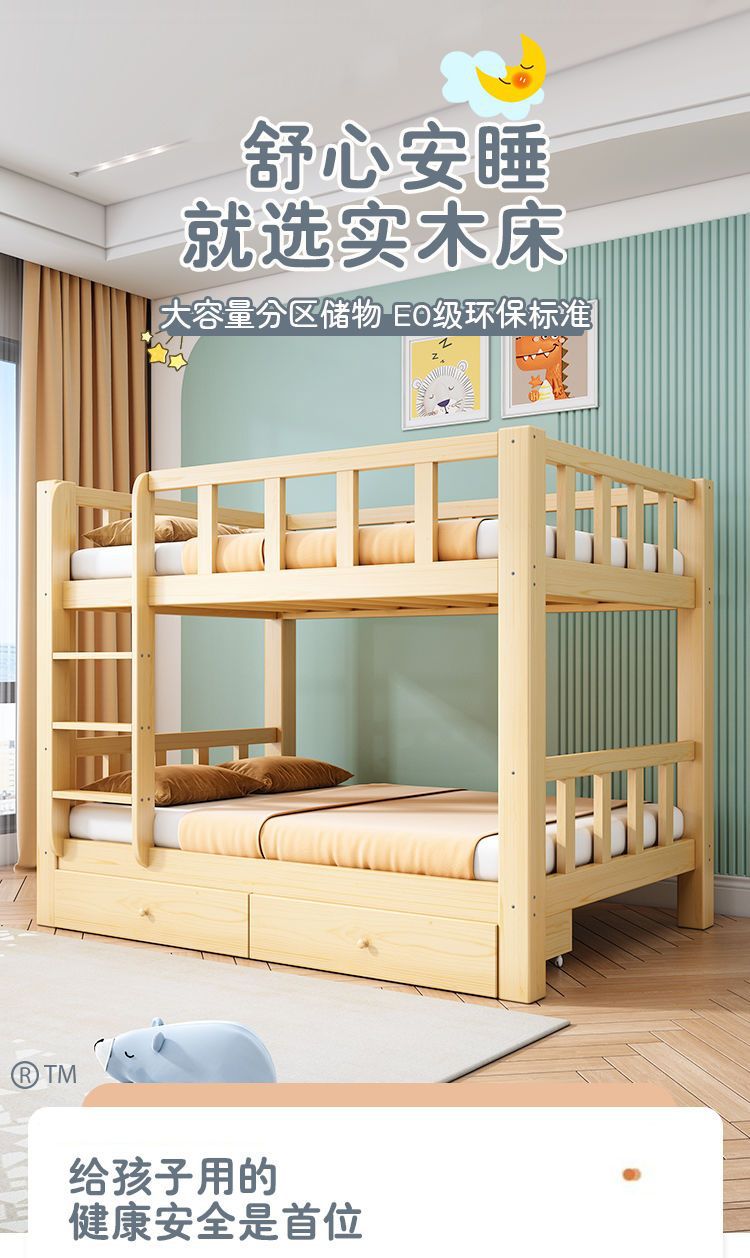 • [두꺼운 원목] 이층침대 + 서랍 + 견실 매트리스*2