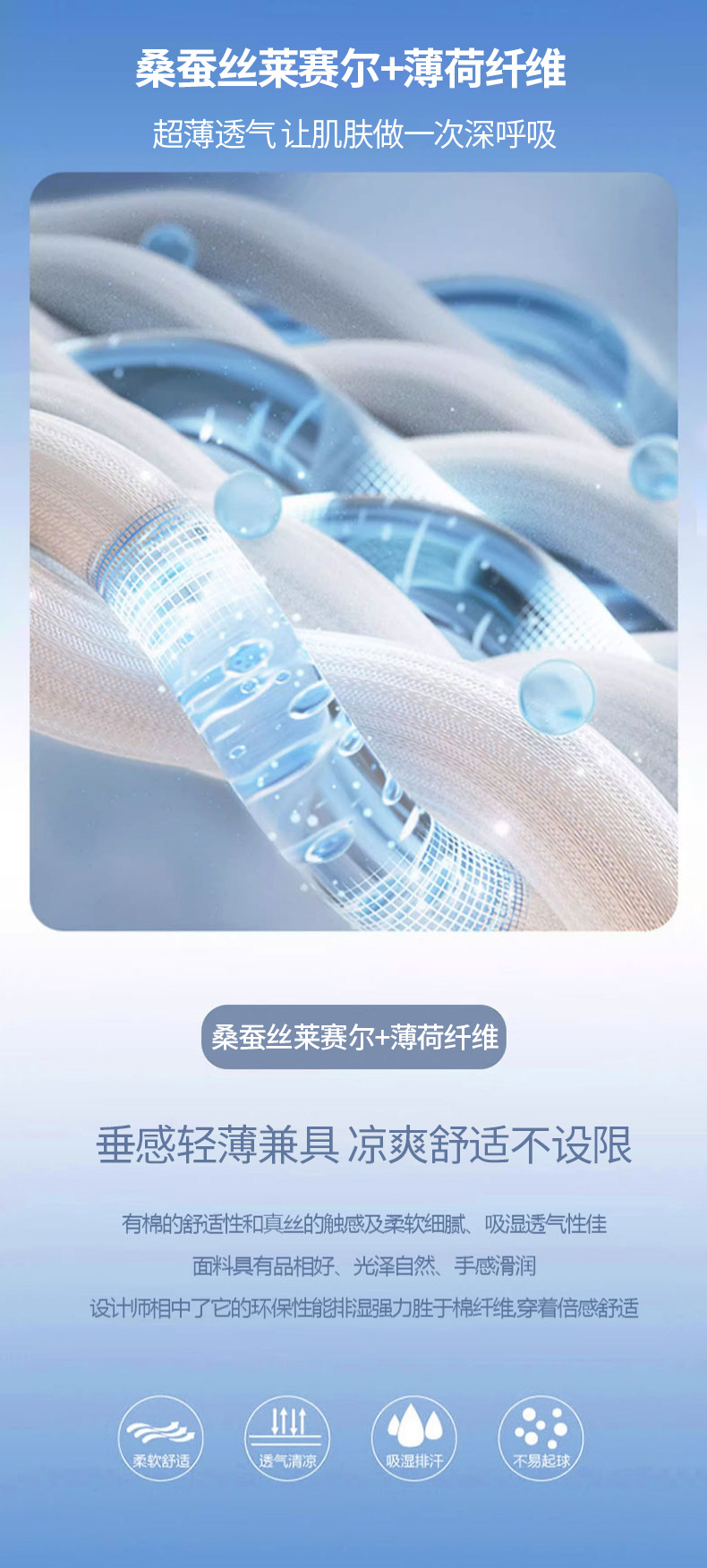 clanfit弹力直筒版型超薄款夏春桑蚕丝薄荷纤维超薄原色牛仔