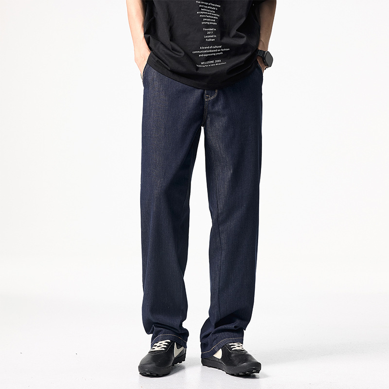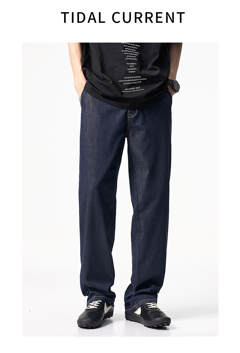 스트레치 스트레이트 핏 초박형 여름 및 봄 뽕나무 실크 민트 섬유 초박형 오리지널 컬러 청바지 남성용 트렌디하고 다재다능함스토어 가기
