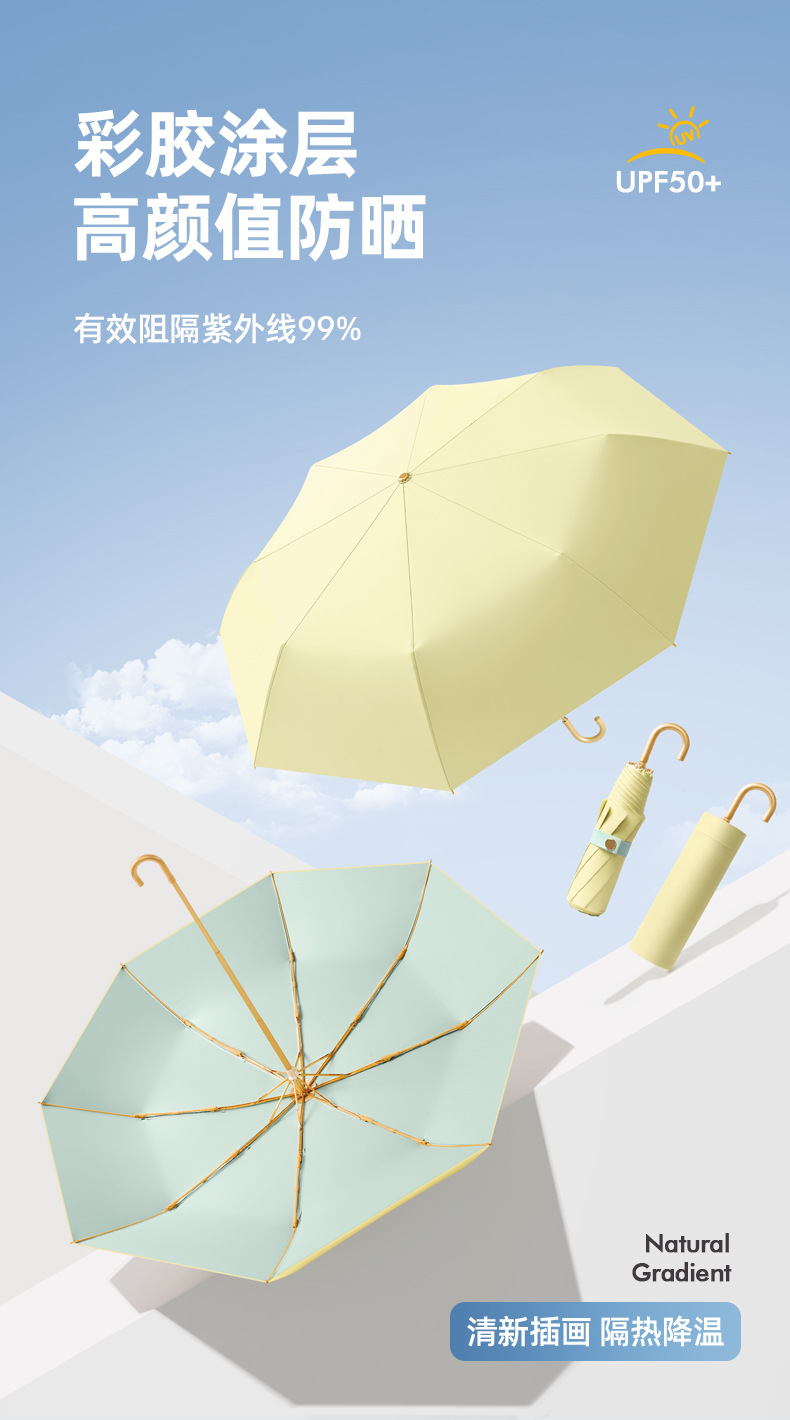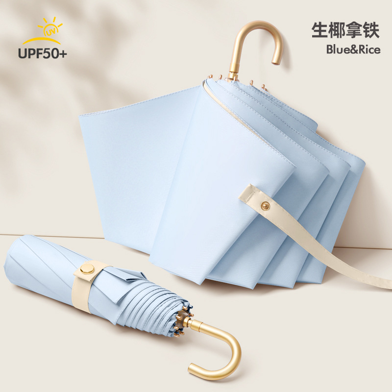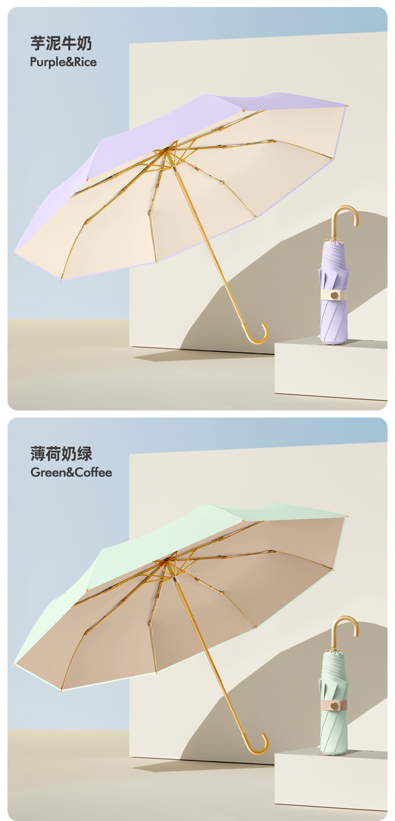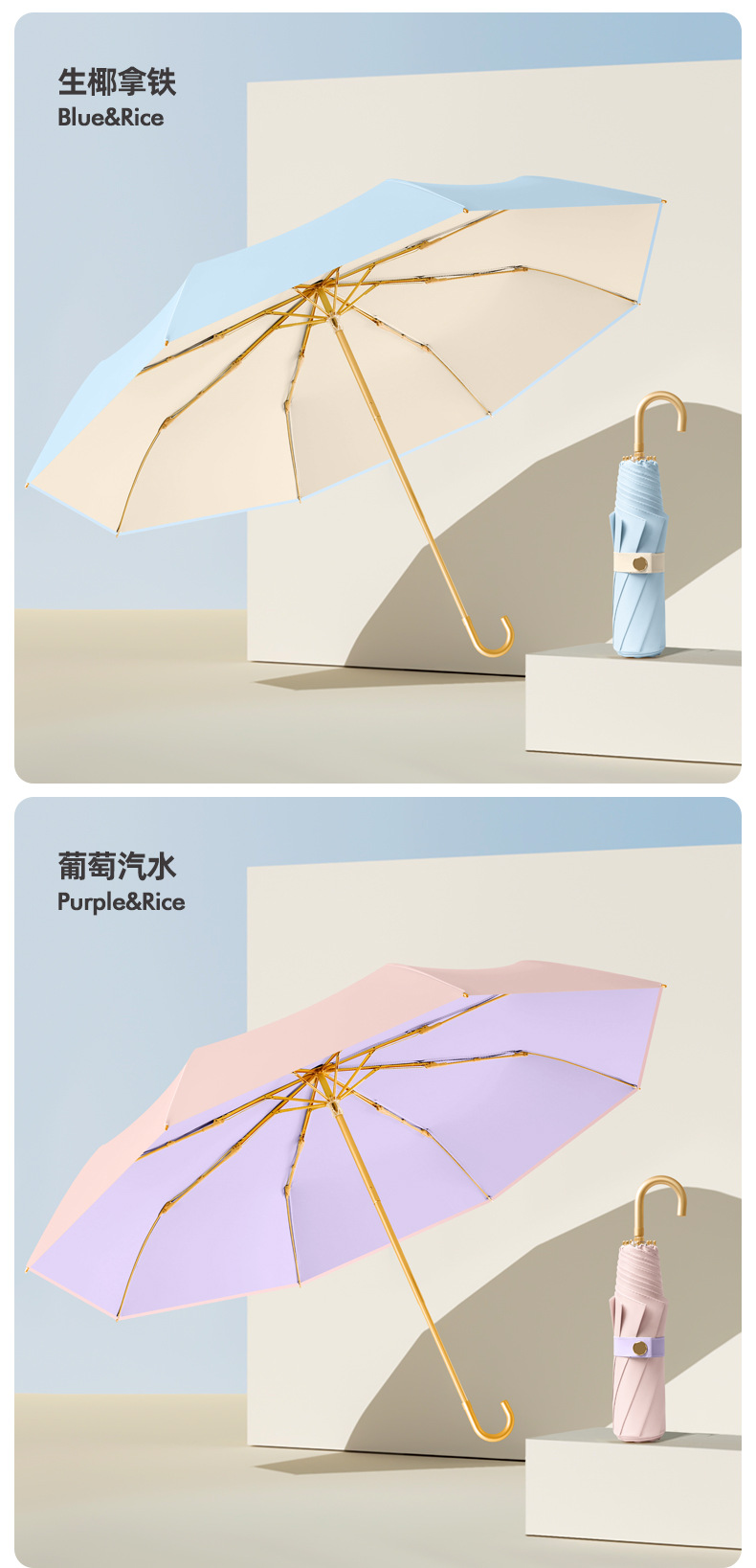 컬러풀한 접이식 태양 우산, 가볍고 고급스러운 여성용 자외선 차단 및 자외선 차단 우산, 라인 커브 후크, 비 또는 빛 우산스토어 가기