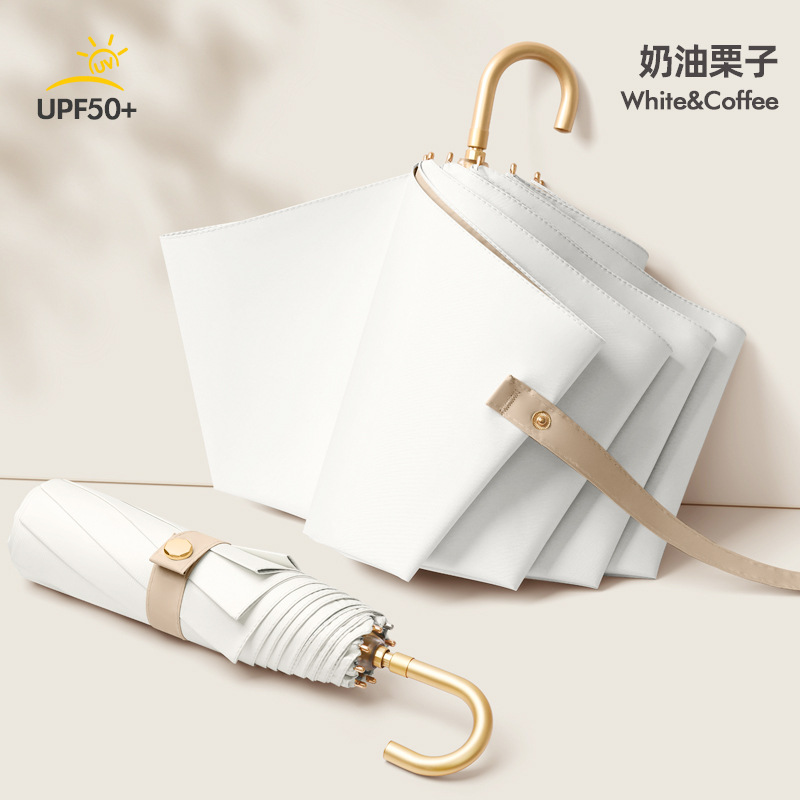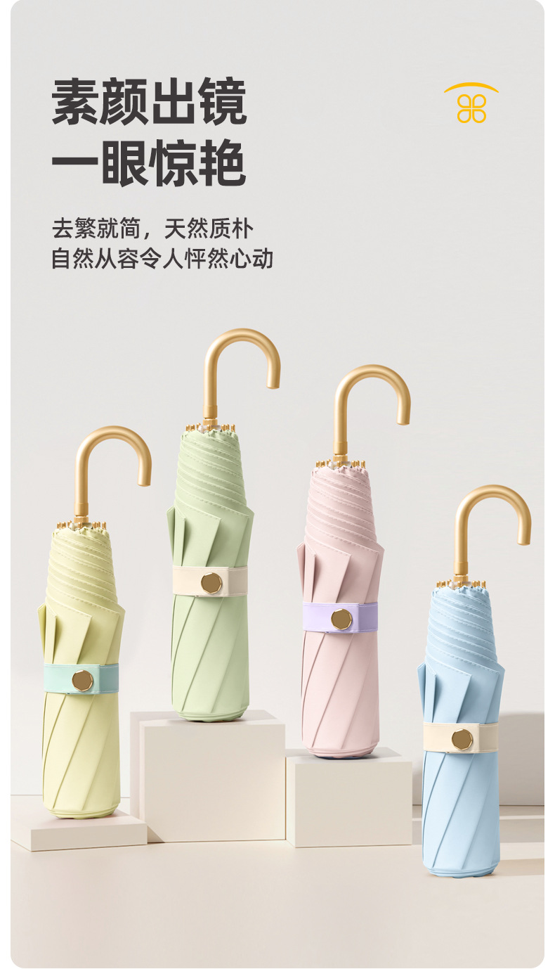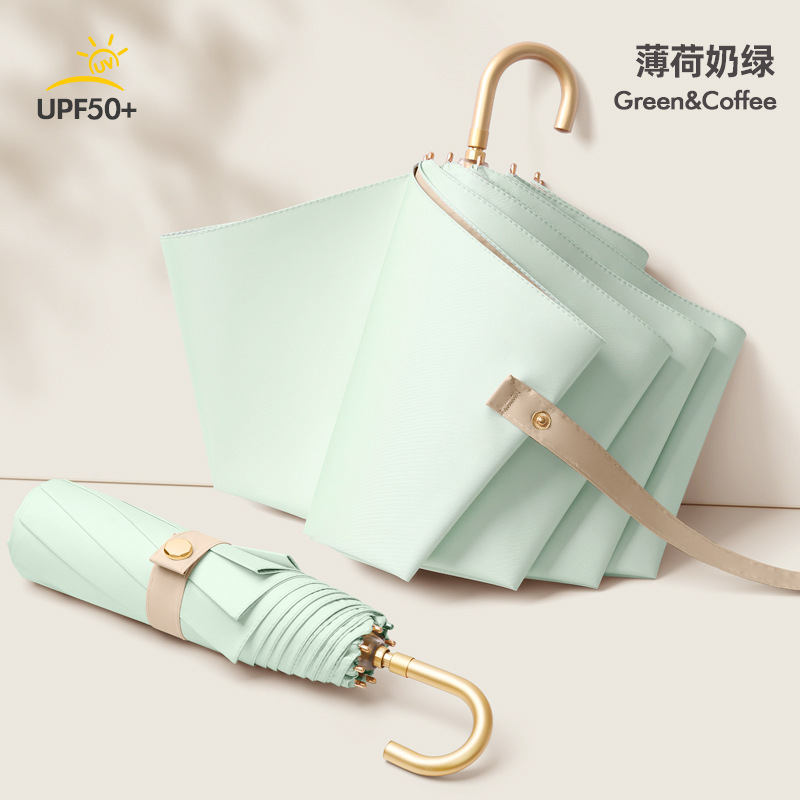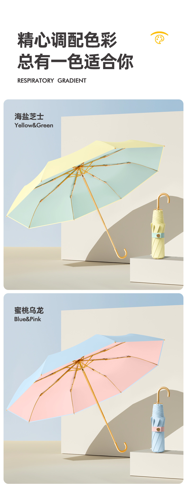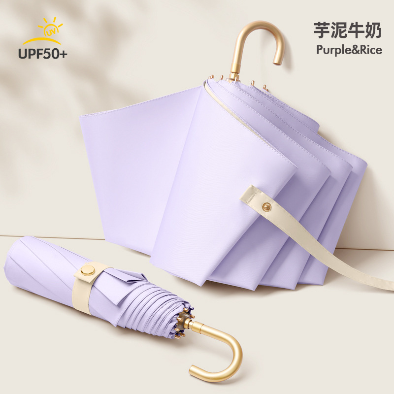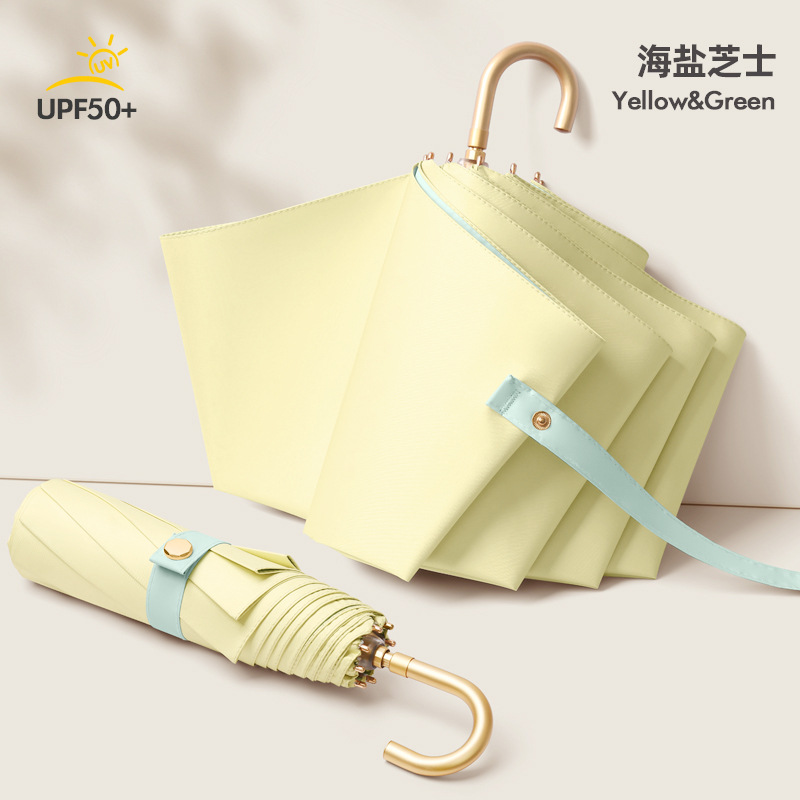 컬러풀한 접이식 태양 우산, 가볍고 고급스러운 여성용 자외선 차단 및 자외선 차단 우산, 라인 커브 후크, 비 또는 빛 우산