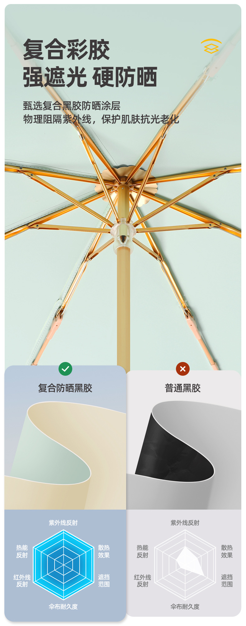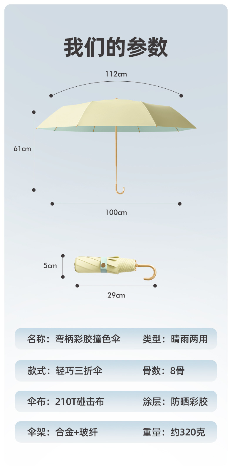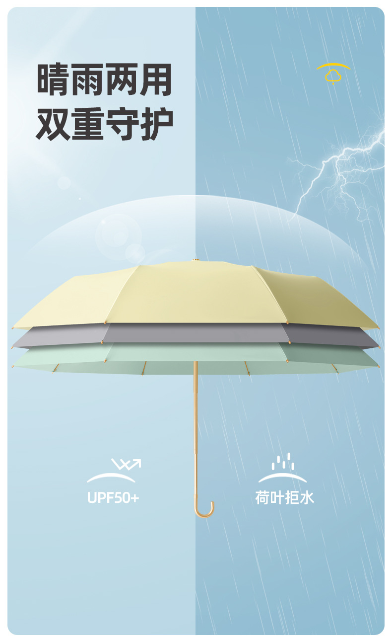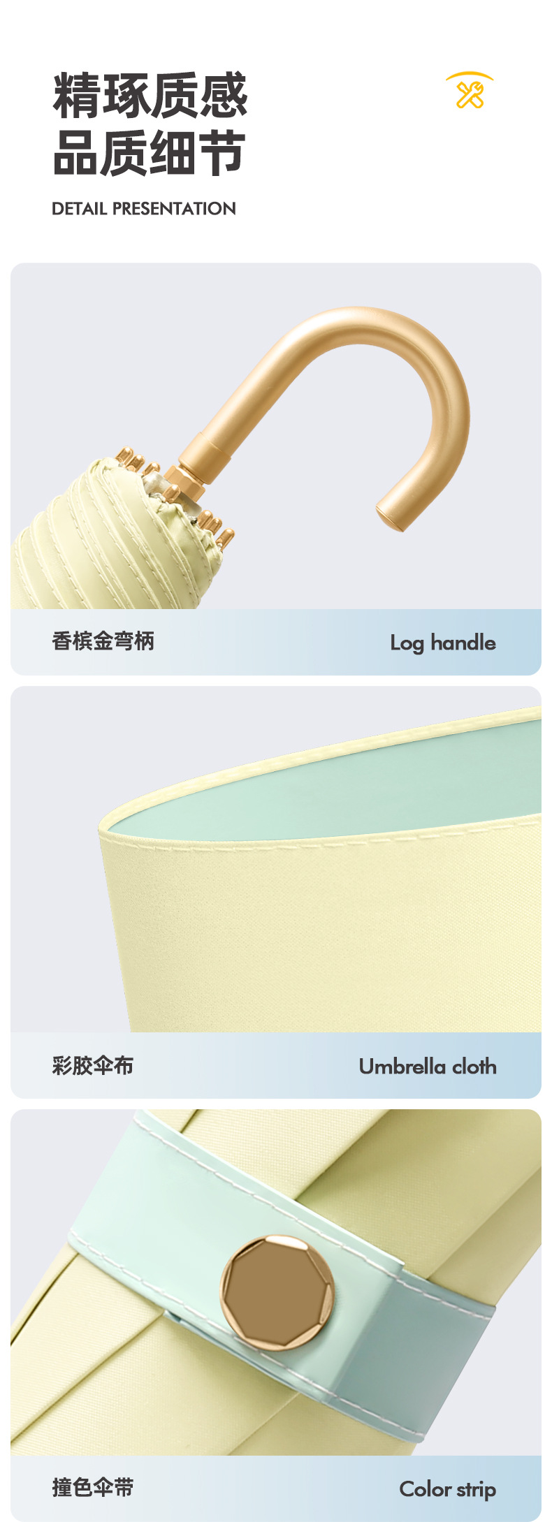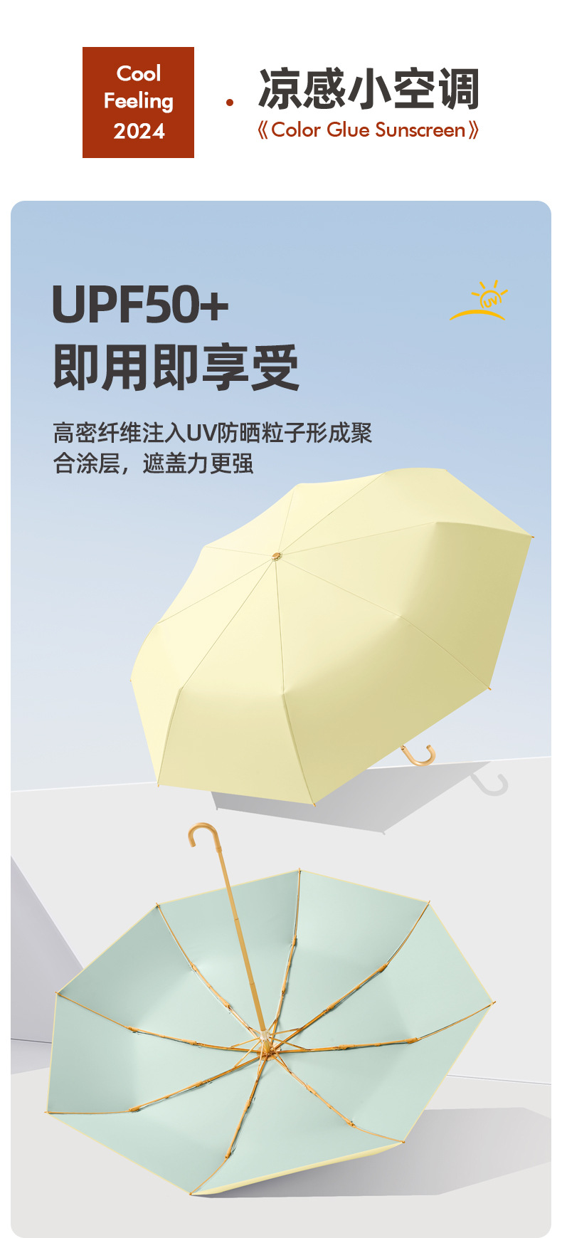 컬러풀한 접이식 태양 우산, 가볍고 고급스러운 여성용 자외선 차단 및 자외선 차단 우산, 라인 커브 후크, 비 또는 빛 우산