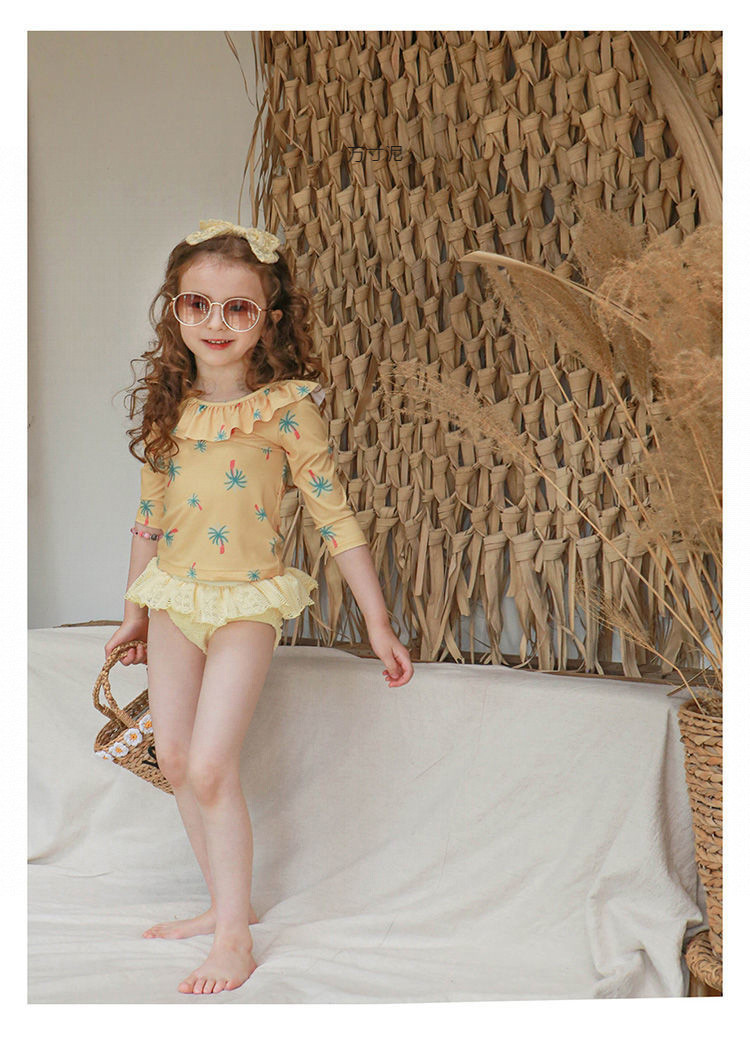 새로운 어린이 수영복 긴팔 자외선 차단 소녀 수영복 스플릿 베이비 유아 슈퍼 요정 수영복 대외 무역 도매