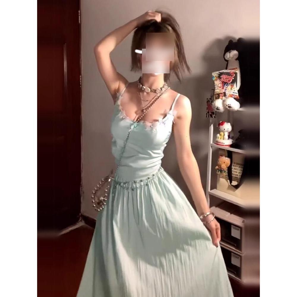 소녀의 새로운 프랑스 스타일 아름다운 슬링 원피스 어린이 여름 짧은 해변 휴일 우아한 요정 긴 원피스