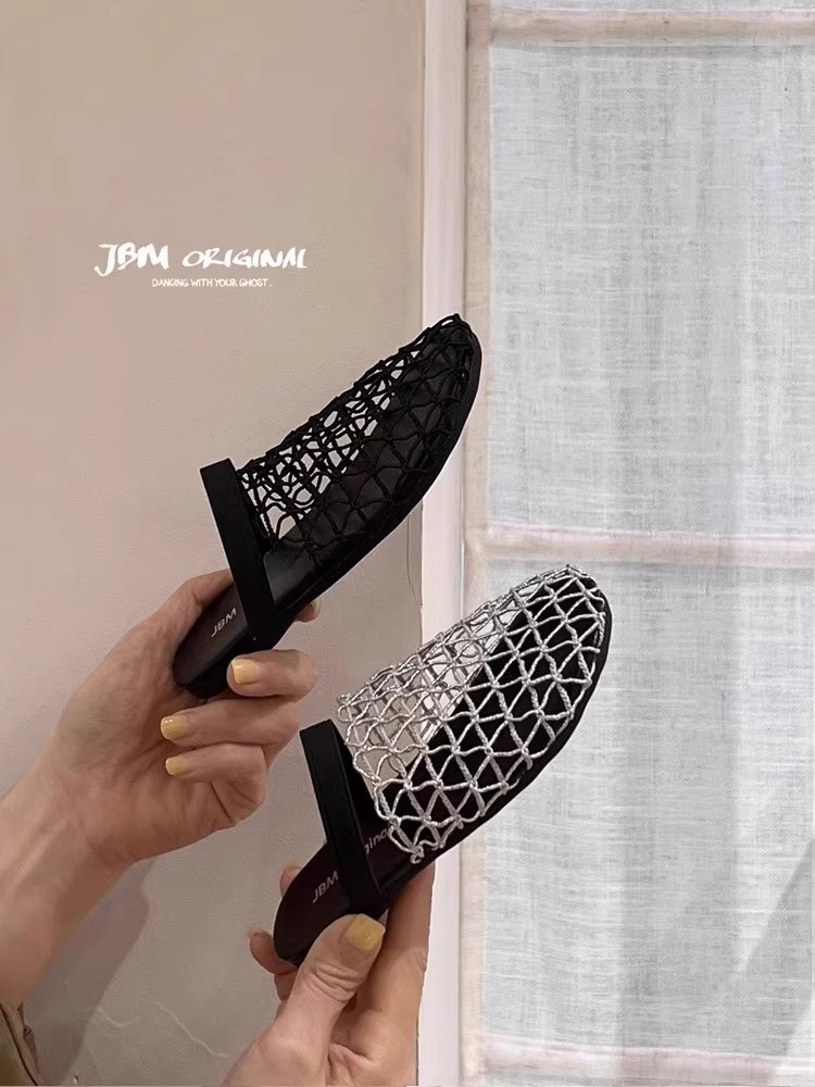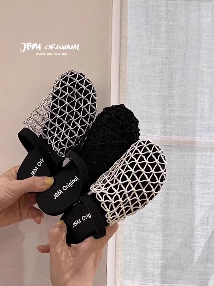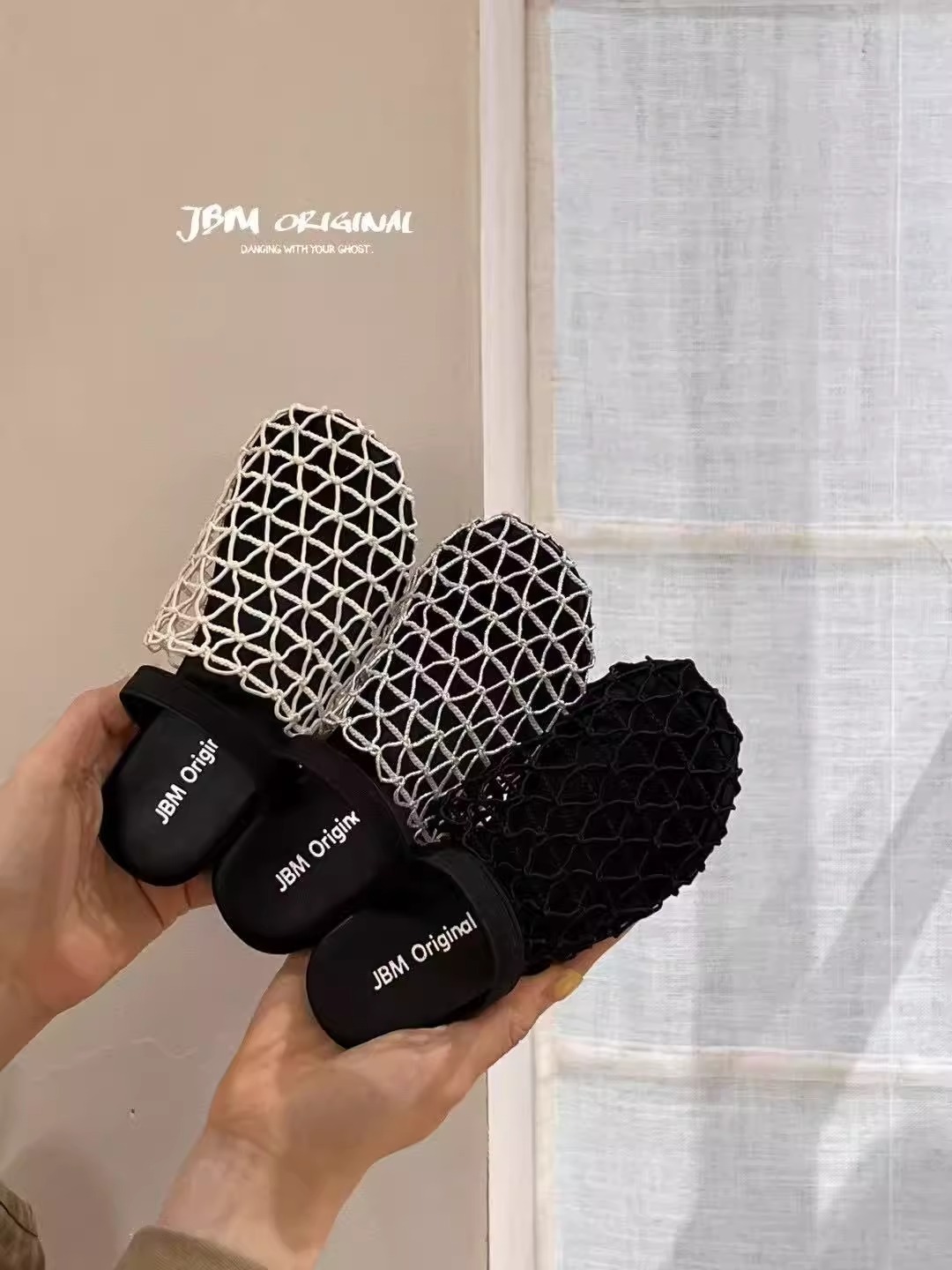 한국 스타일 여름 소녀 슈퍼 아름다운 할로우 짠 슬리퍼 2025 새로운 어린이 서양식 낚시 그물 슬립 온 샌들스토어 가기