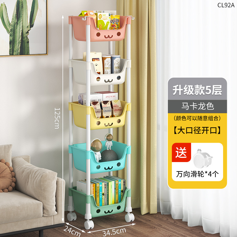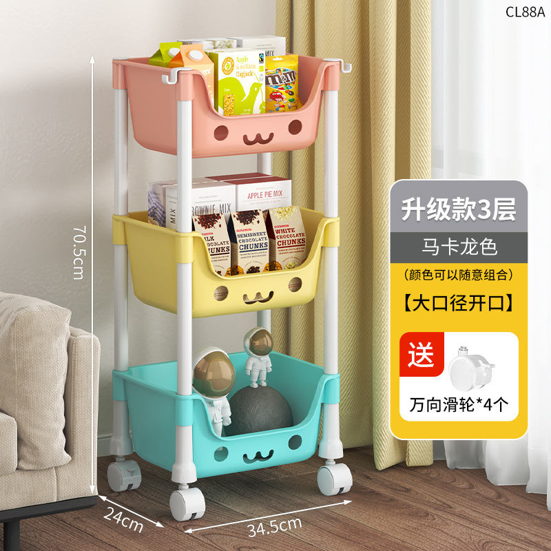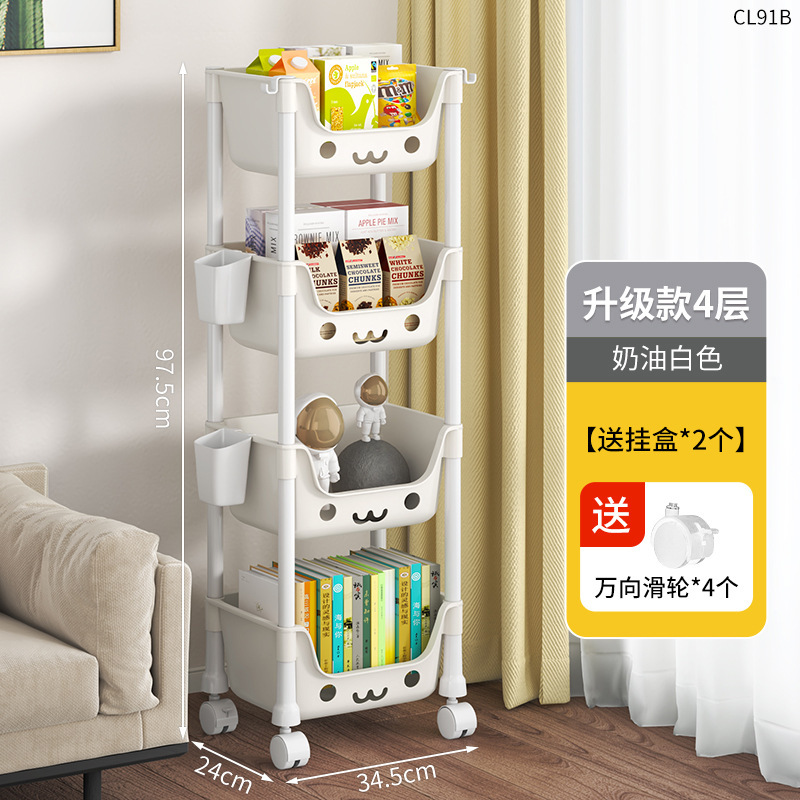 어린이 간식 장난감 보관함 바퀴가 달린 이동식 책장 가정용 다층 거실 주방 정리 침실