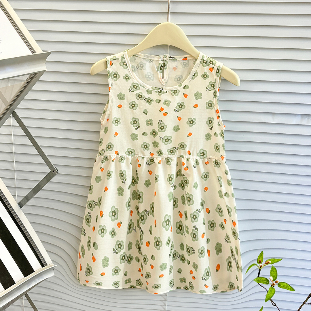 여자 여름 얇은 원피스 어린이 거품 느슨한 민소매 발 치마 아기 꽃 캐주얼 긴 치마스토어 가기