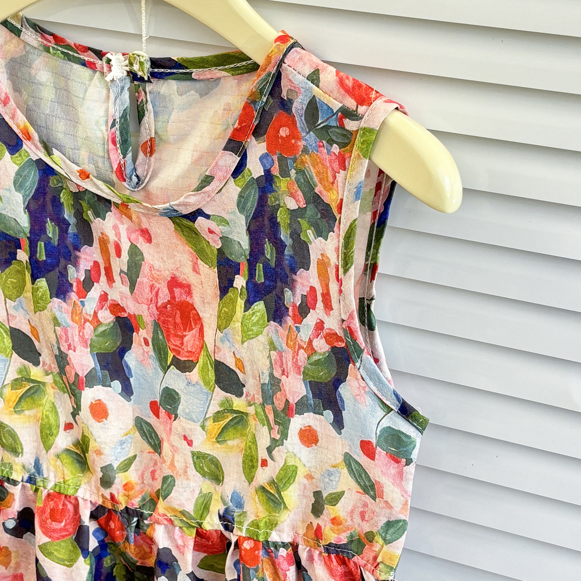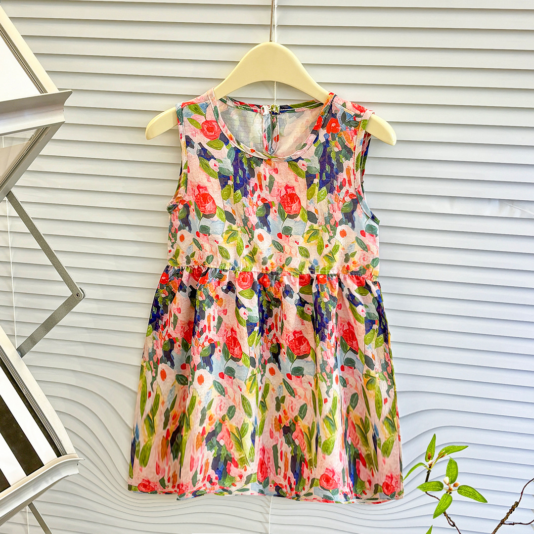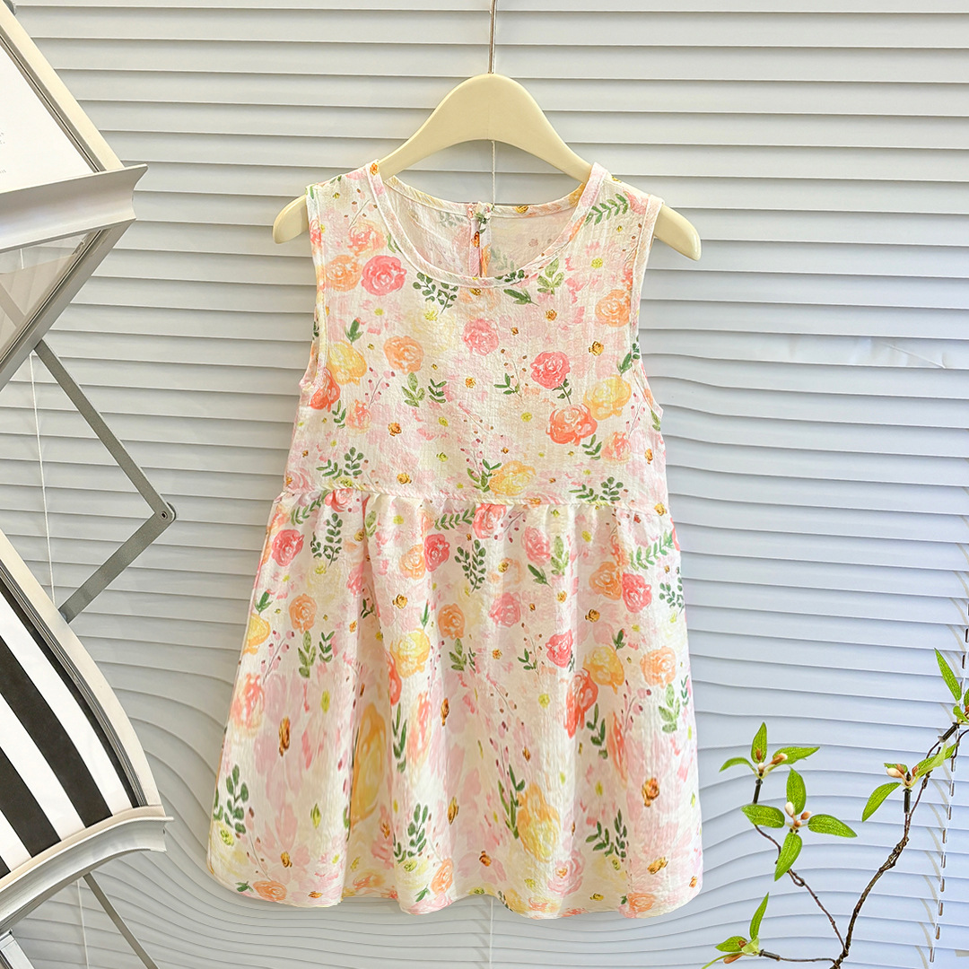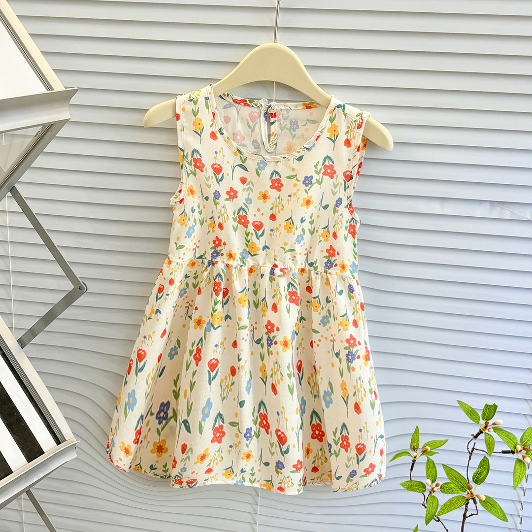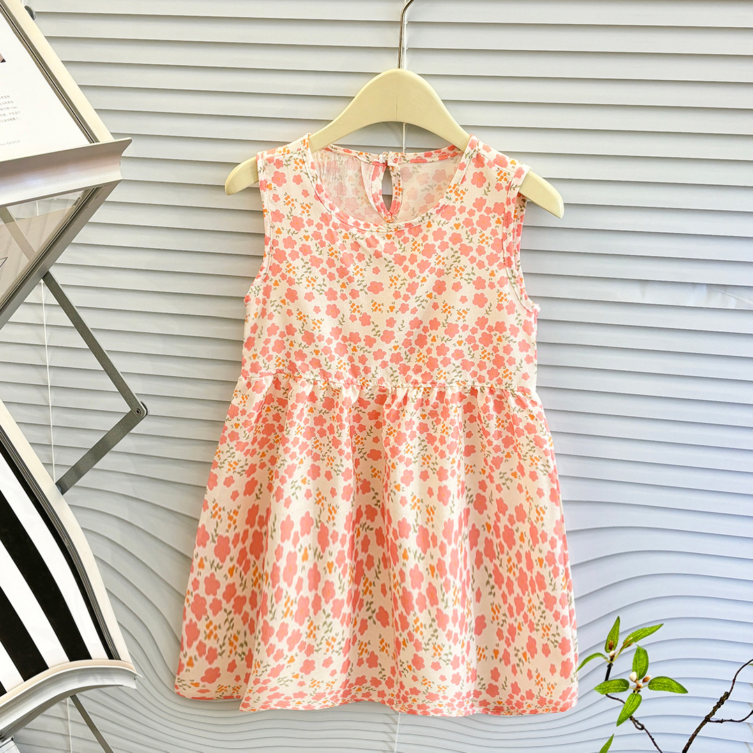 여자 여름 얇은 원피스 어린이 거품 느슨한 민소매 발 치마 아기 꽃 캐주얼 긴 치마