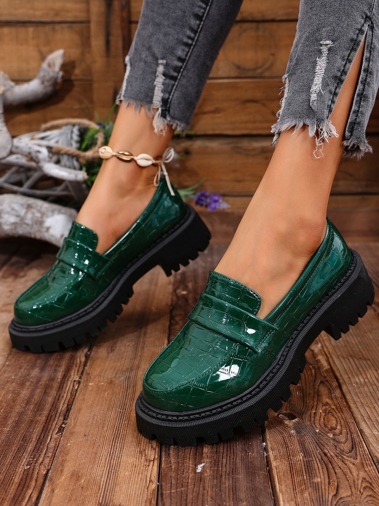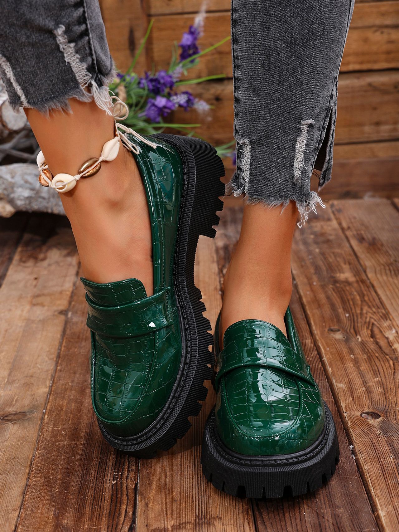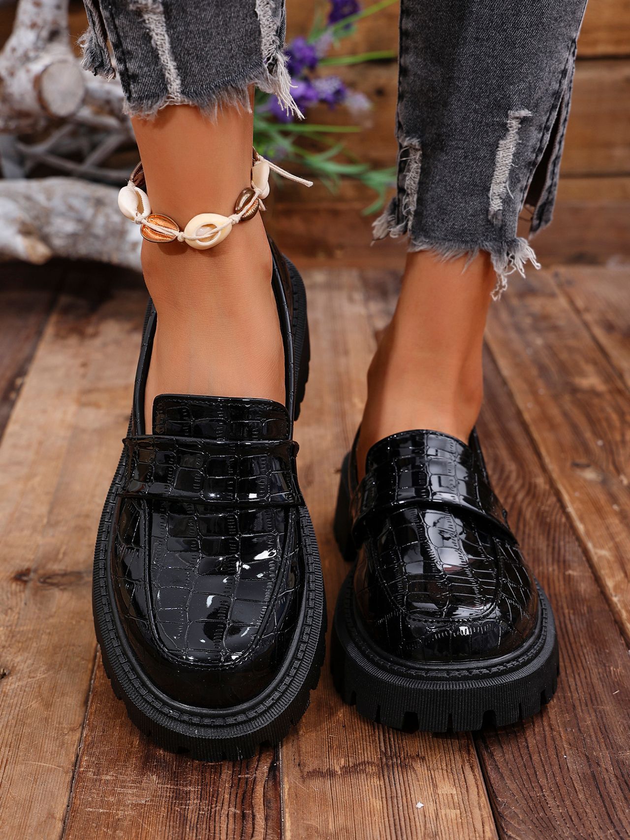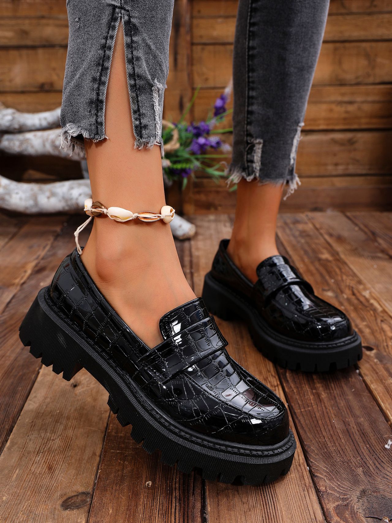 대외 무역 2025 봄, 가을 새로운 영국 스타일 슬립 온 여성용 작은 가죽 신발 대형 로퍼 캐주얼 다용도 신발스토어 가기