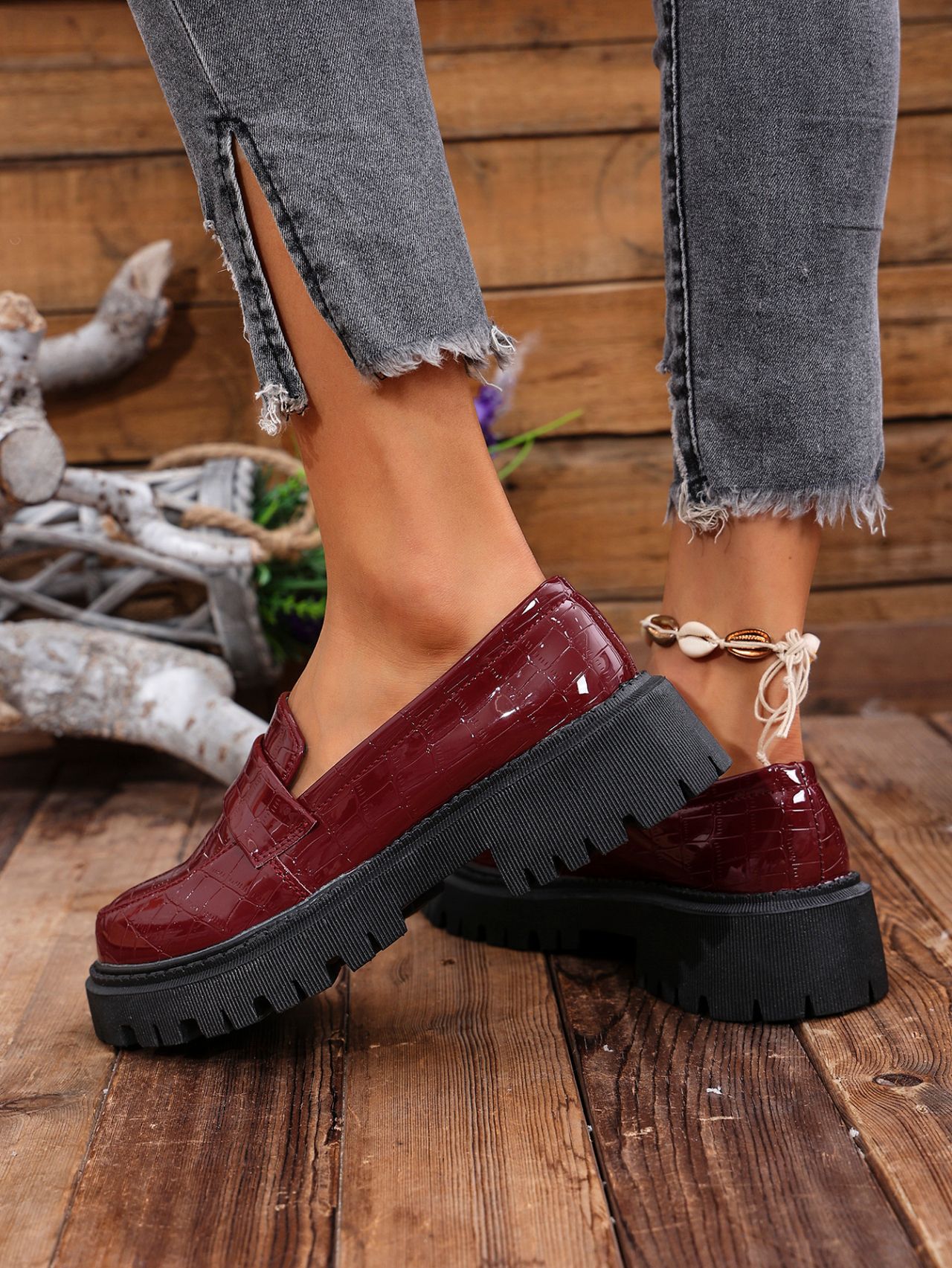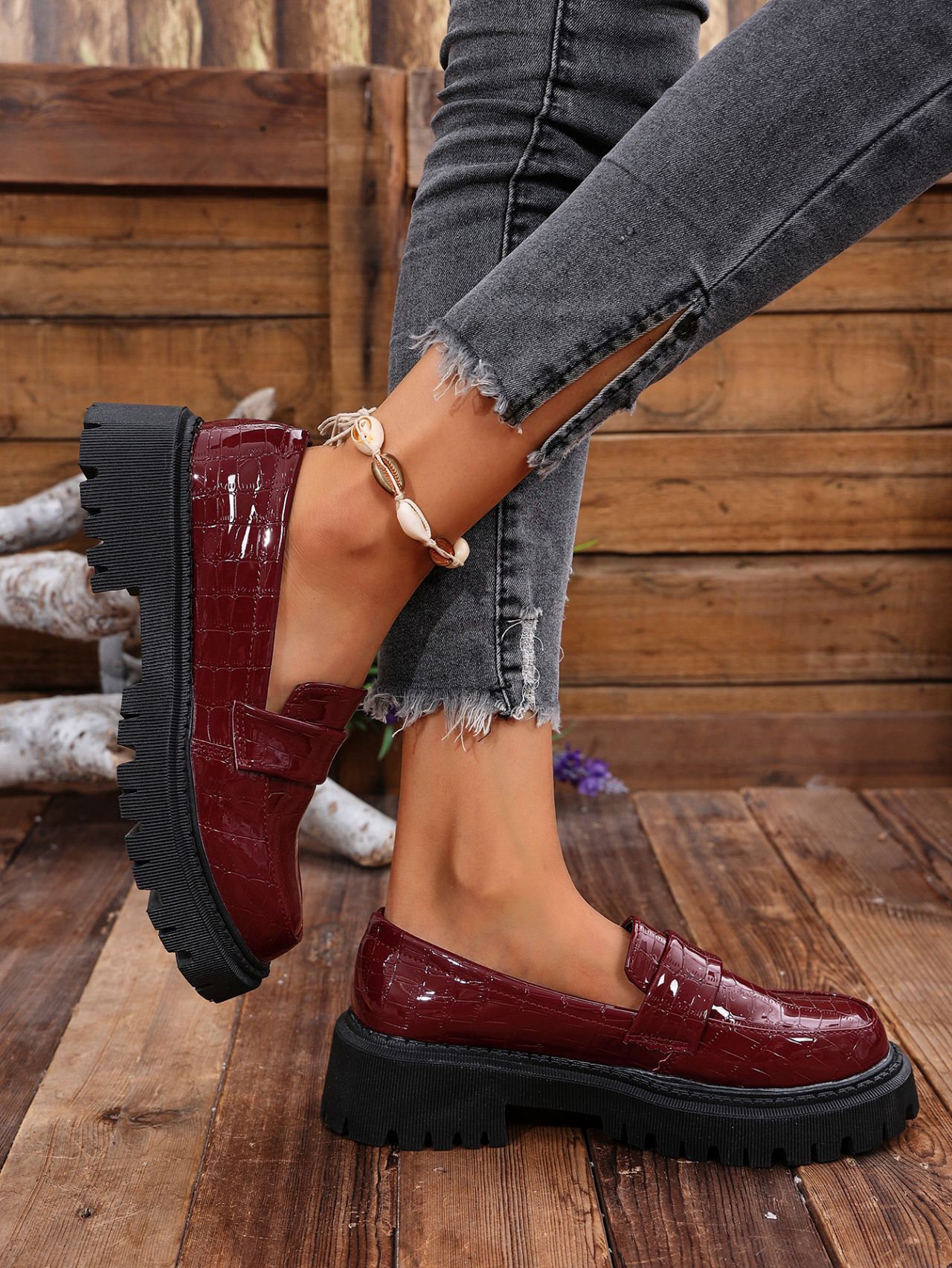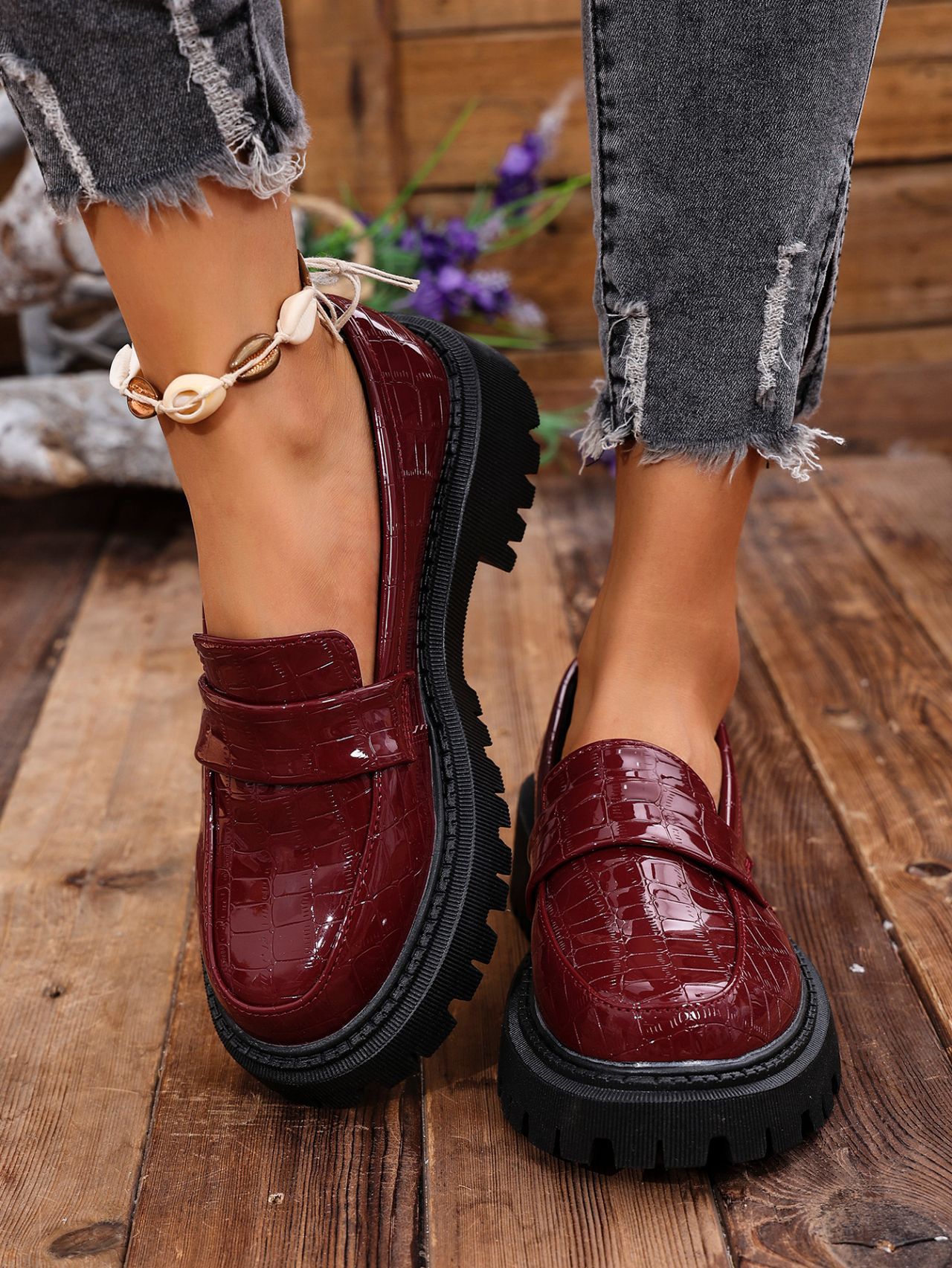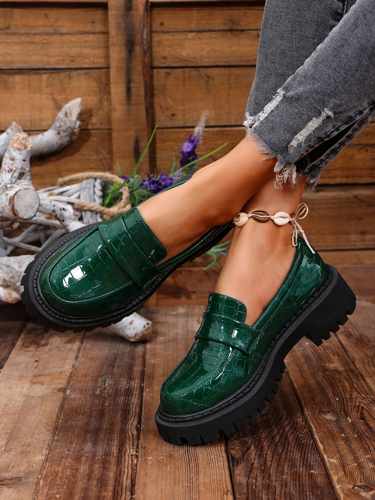 대외 무역 2025 봄, 가을 새로운 영국 스타일 슬립 온 여성용 작은 가죽 신발 대형 로퍼 캐주얼 다용도 신발스토어 가기